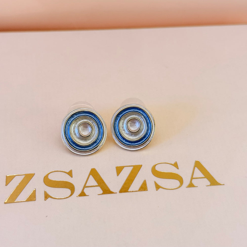 Elevate your style with our Spiral blue and cream enamel gold plated set. This casual and beautiful set is perfect for any occasion. The spiral design adds a unique touch to any outfit. Upgrade your jewelry collection today.
