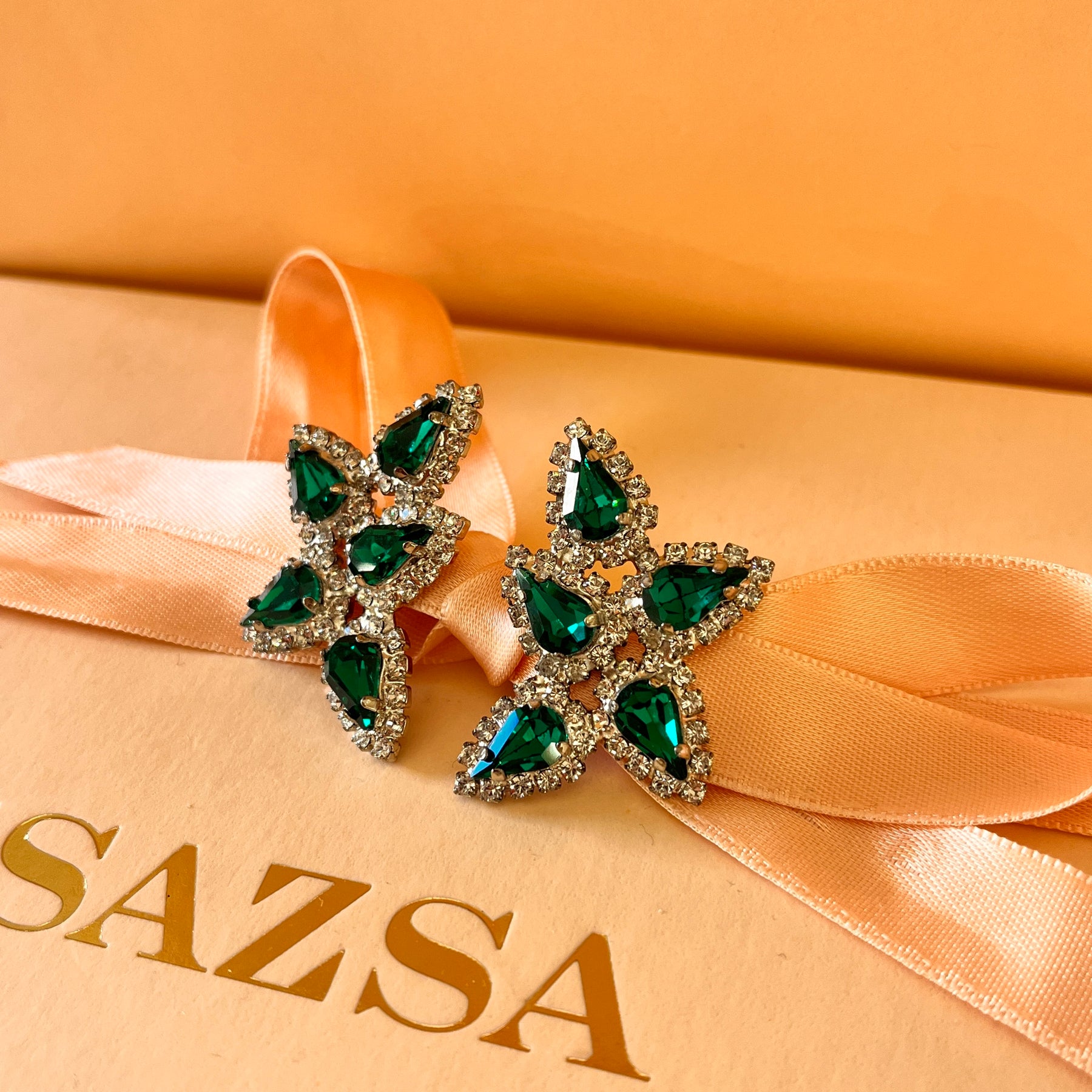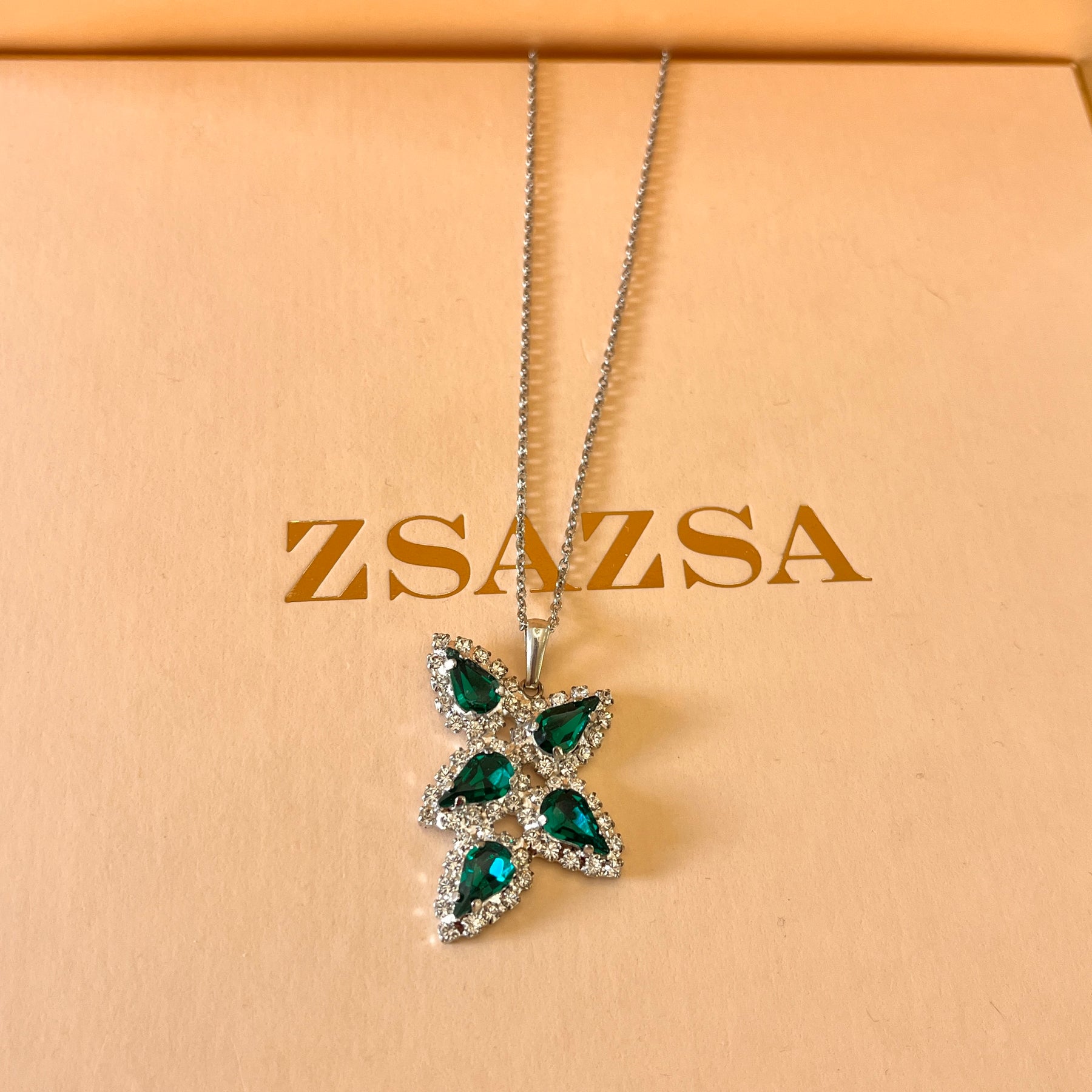 Indulge in luxury and elegance with our Dark green preciosa Crystals Set. Be captivated by the stunning combination of mauve and white gold plated, perfect for any occasion. This set includes different pieces to mix and match, adding versatility to your style. Elevate your look with this exquisite, must-have set!