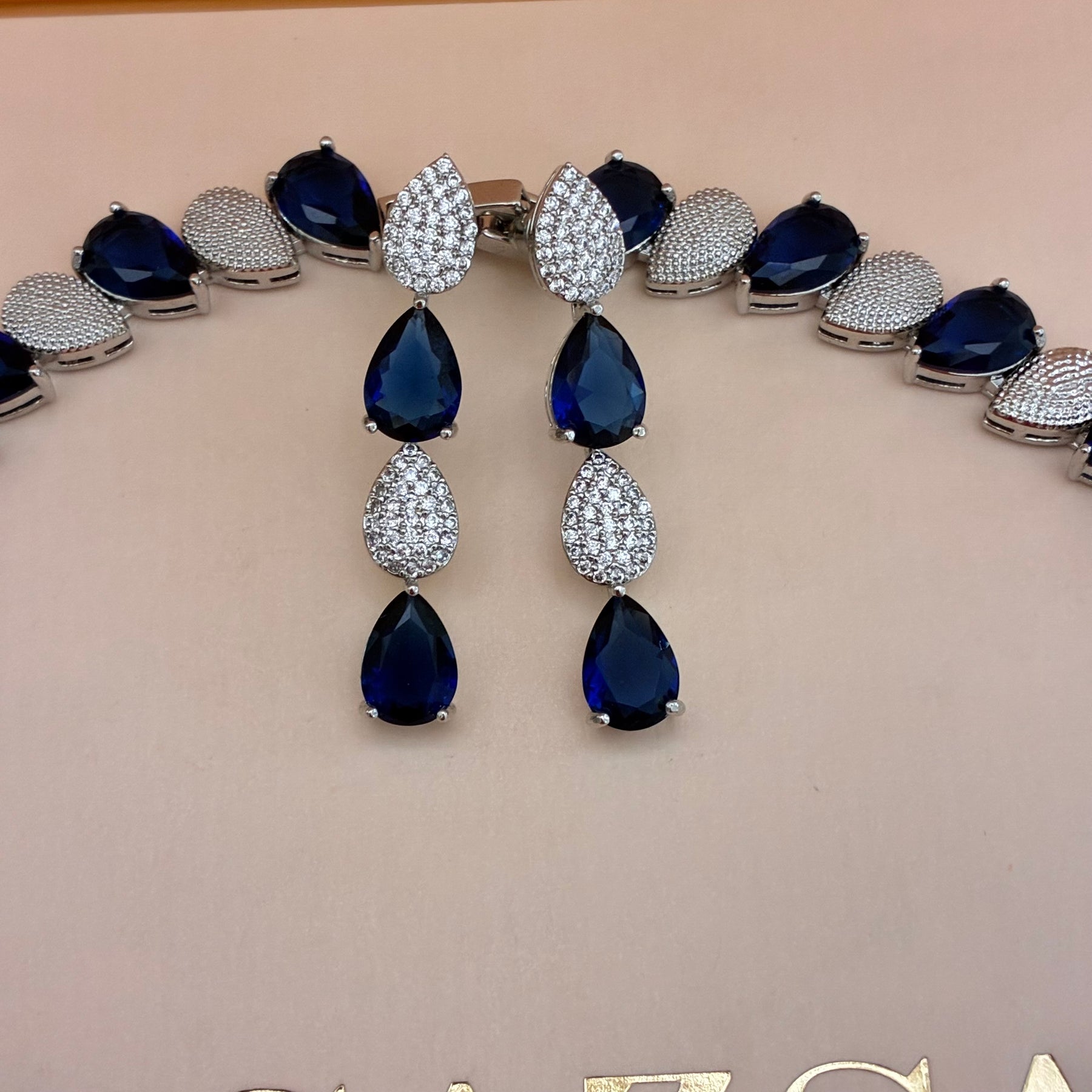 This navy blue zircone silver set is the perfect addition for any special occasion, from weddings to being the mother of the bride or groom. Its elegant design exudes sophistication and style, making it the ideal choice for any formal event. Elevate your look with this special set.