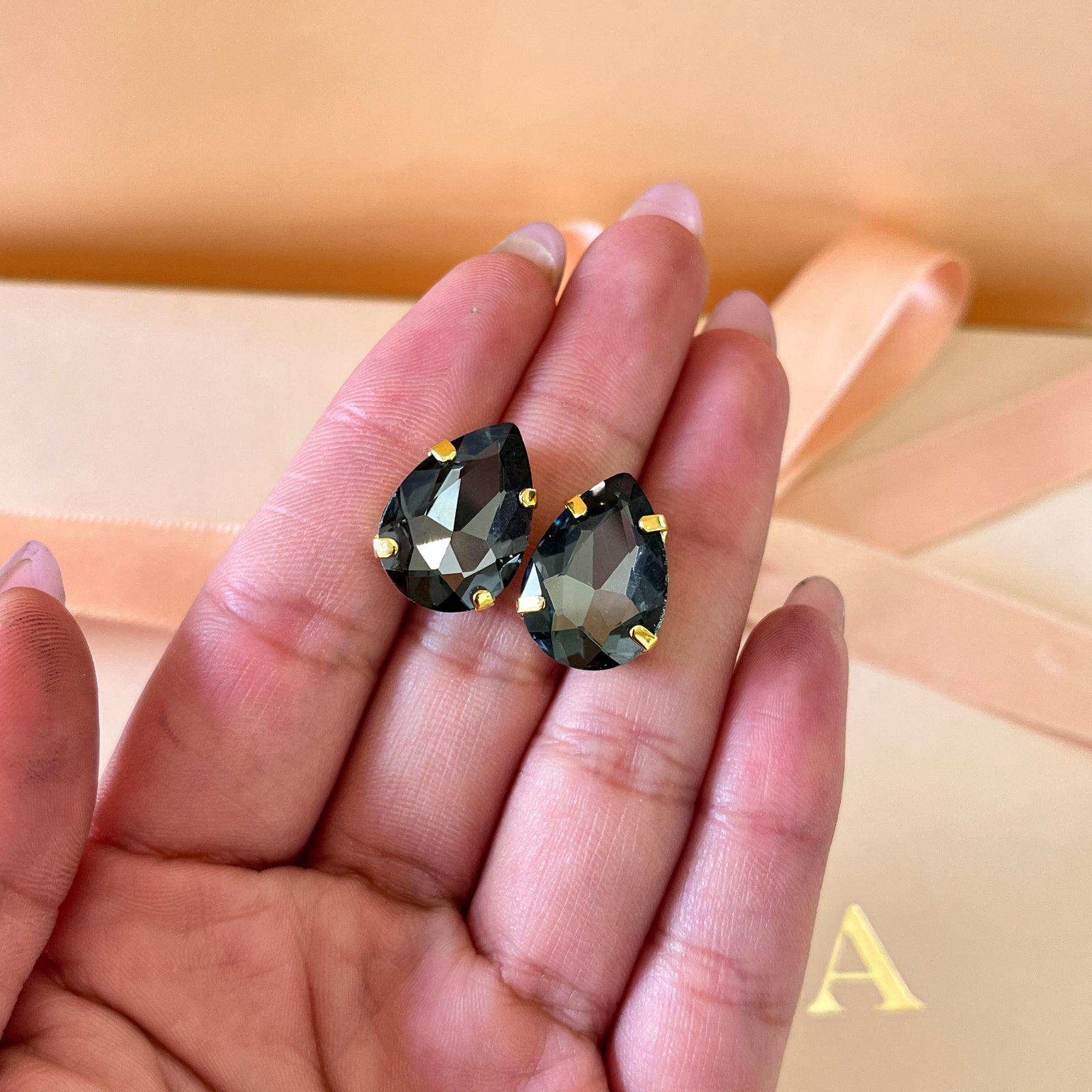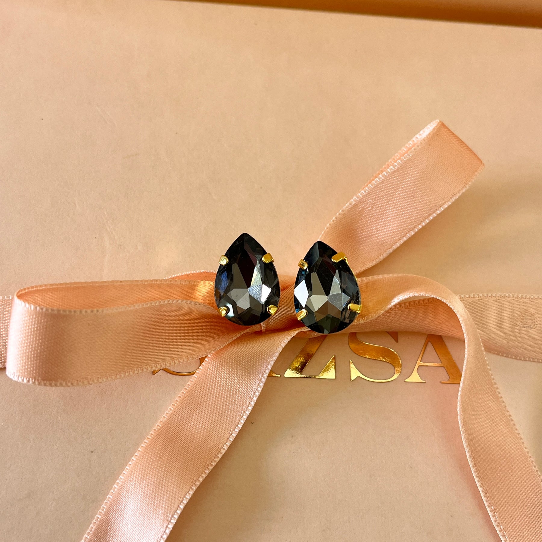 Add a touch of elegance with this beautiful grey teardrop preciosa crystals set. Made with high-quality of gold plated and Preciosa crystals, this simple yet stunning set is perfect for any occasion. Elevate your style and make a statement with this set that is both classic and modern.