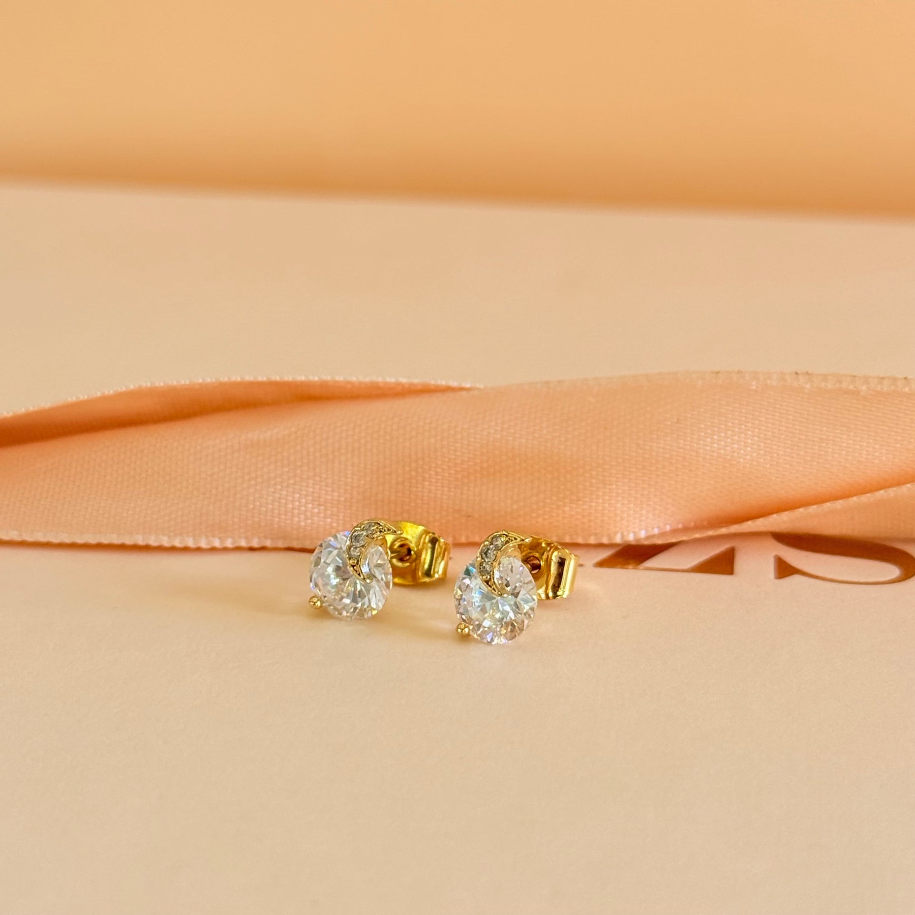 Add a touch of magic to your look with our Moon small zircone gold plated studs. These sweet and dainty studs feature a gleaming moon design and zircone accents, perfect for gifting or treating yourself. Elevate any outfit with a touch of shimmer and charm.