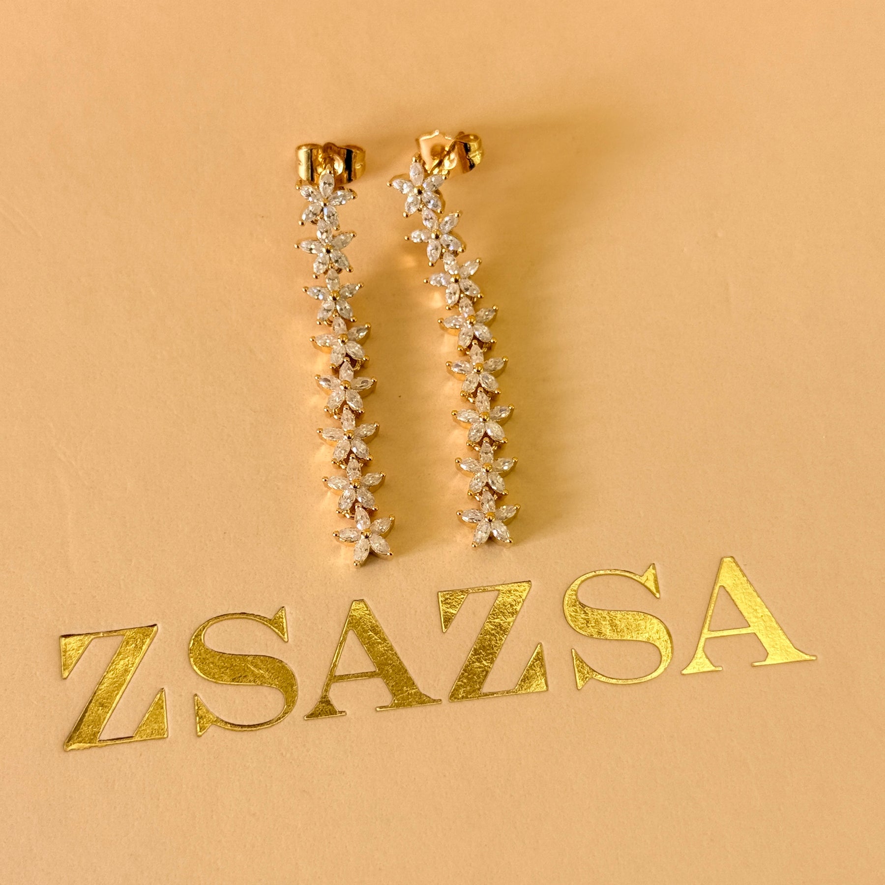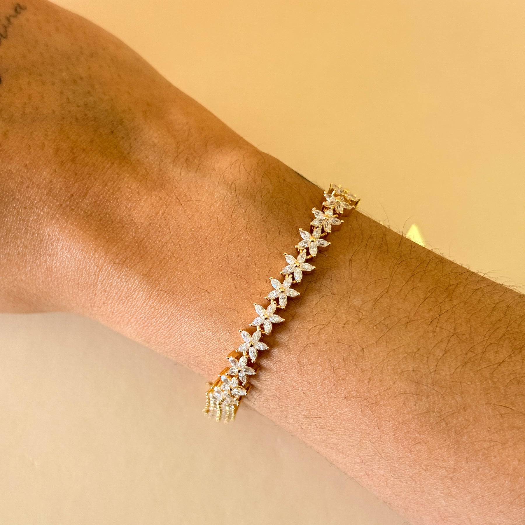 Dainty flowers zircone gold plated earrings and bracelet