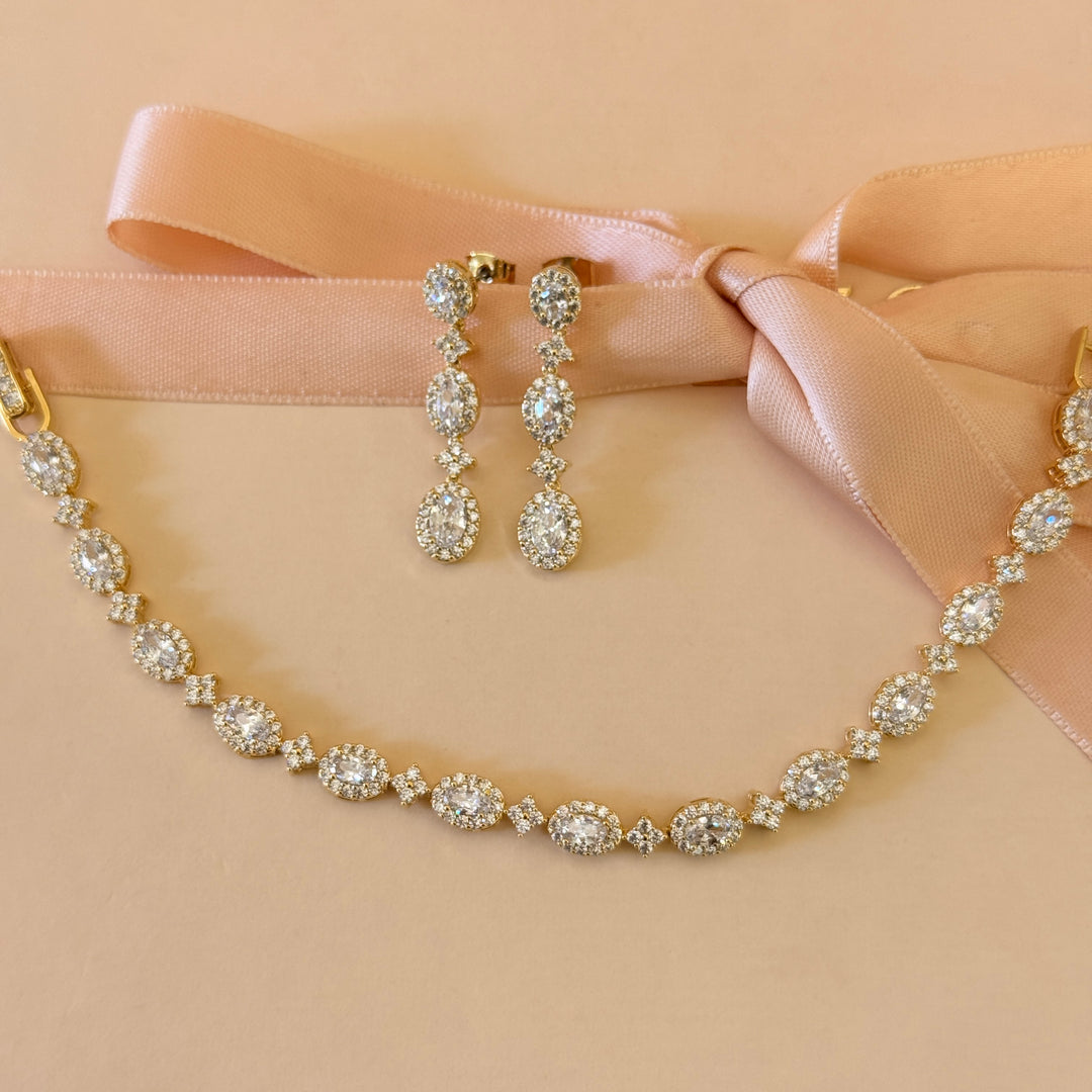 Oval zircone gold plated earrings and bracelet set