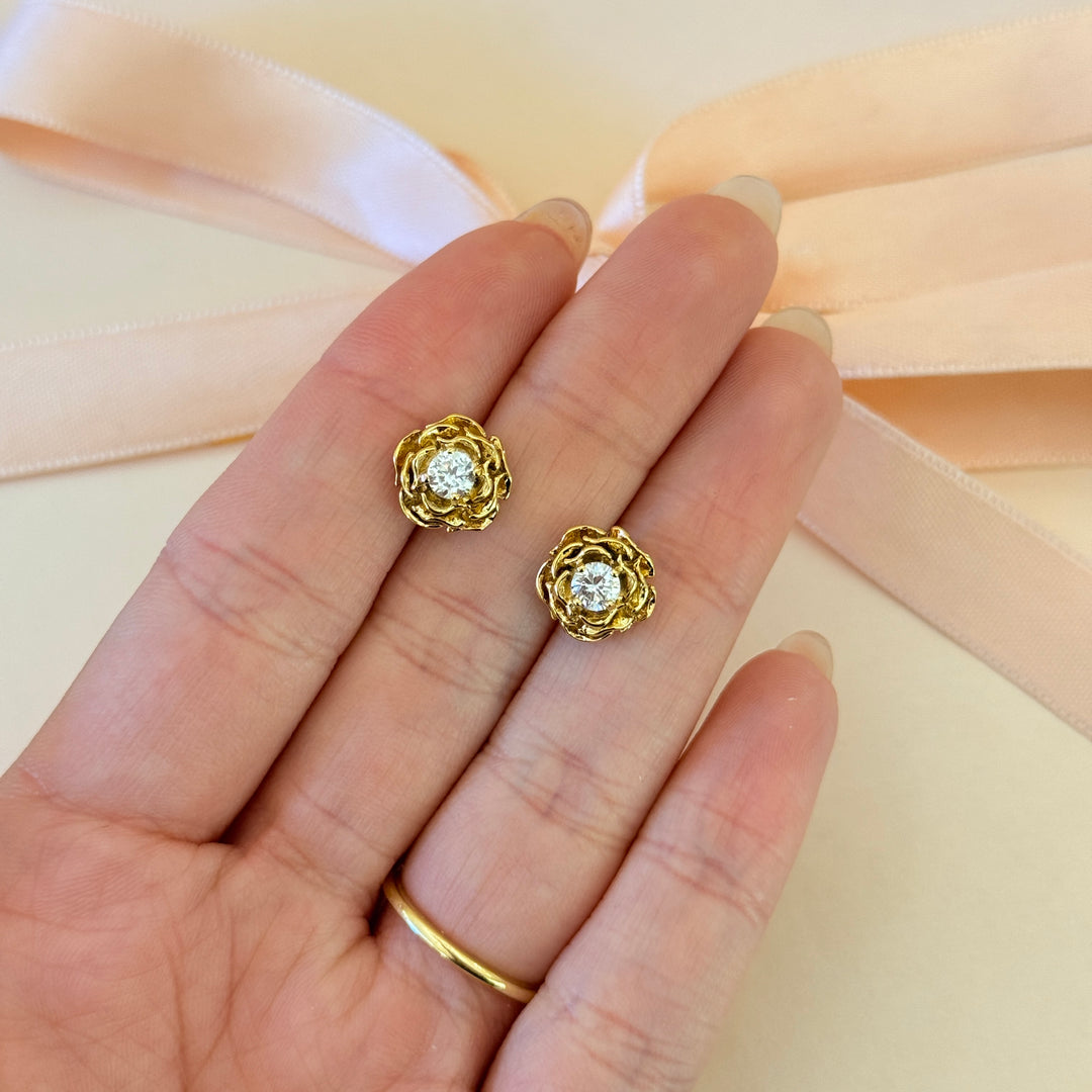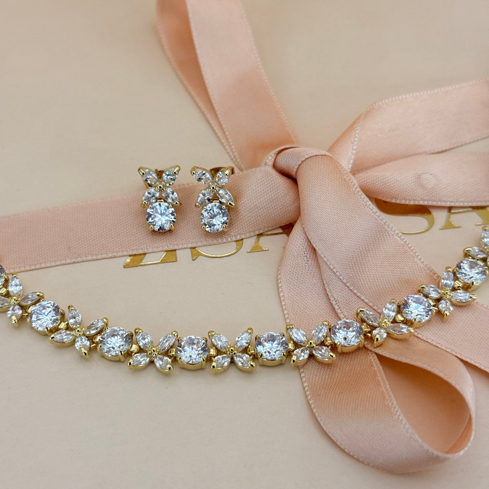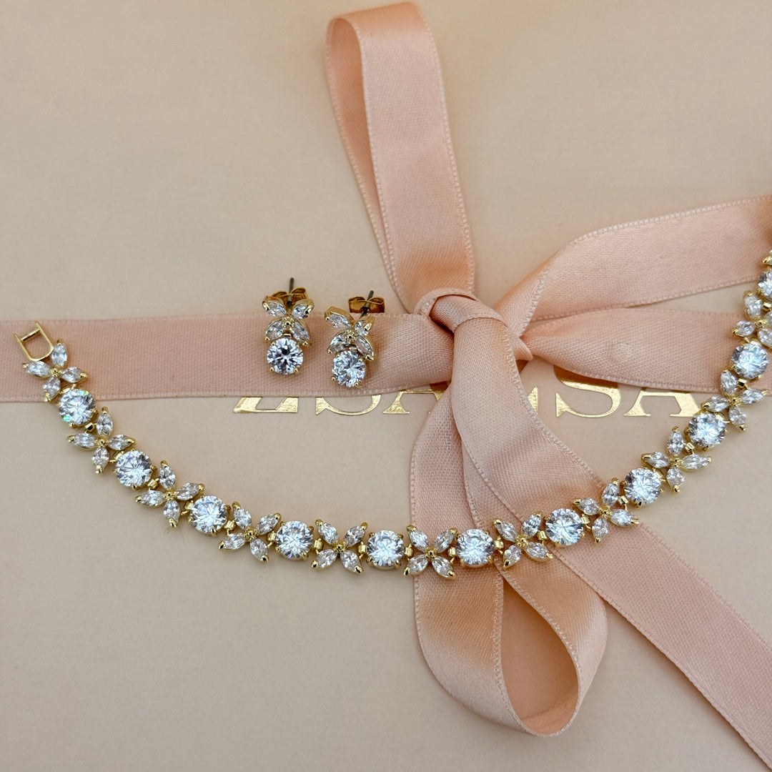 Rosette zircone gold plated earrings and bracelet set
