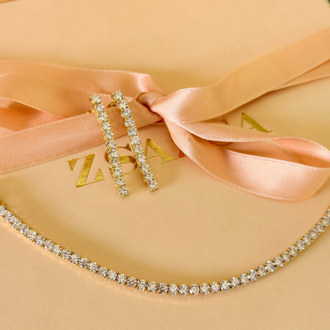 Tennis zircone gold plated earrings and bracelet