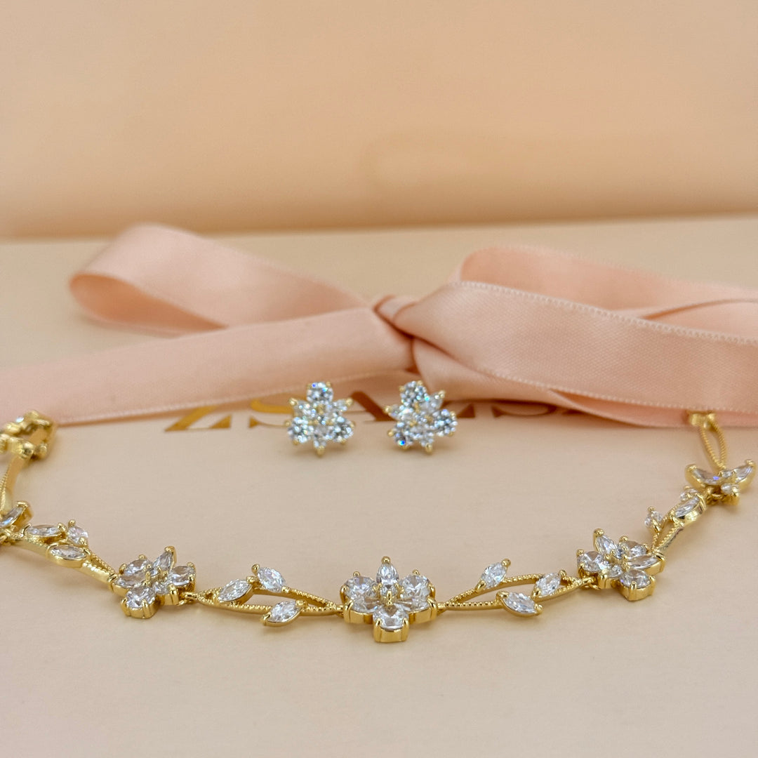 Flower zircone gold plated earrings and bracelet