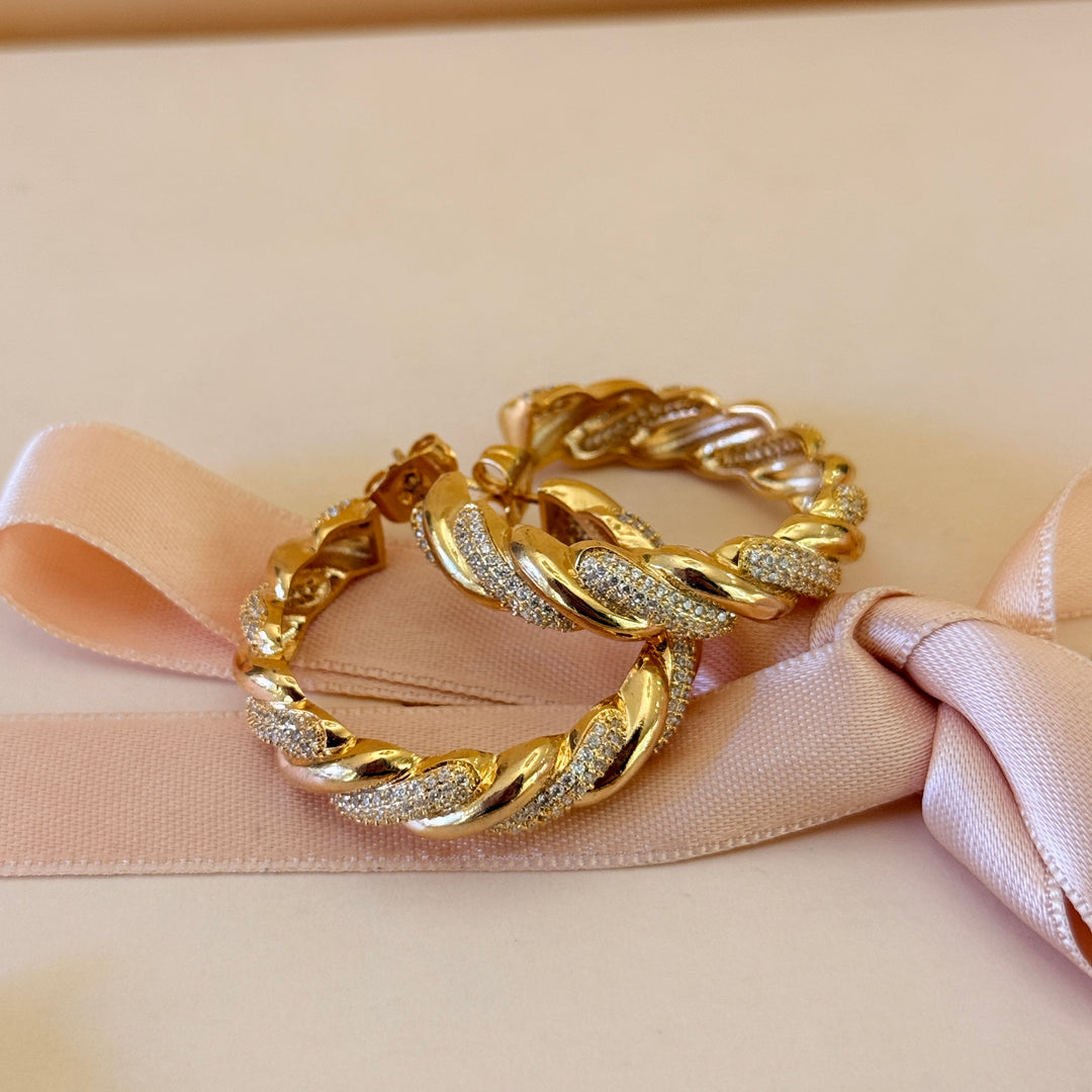 Twisted zircone gold plated hoops and bracelet set