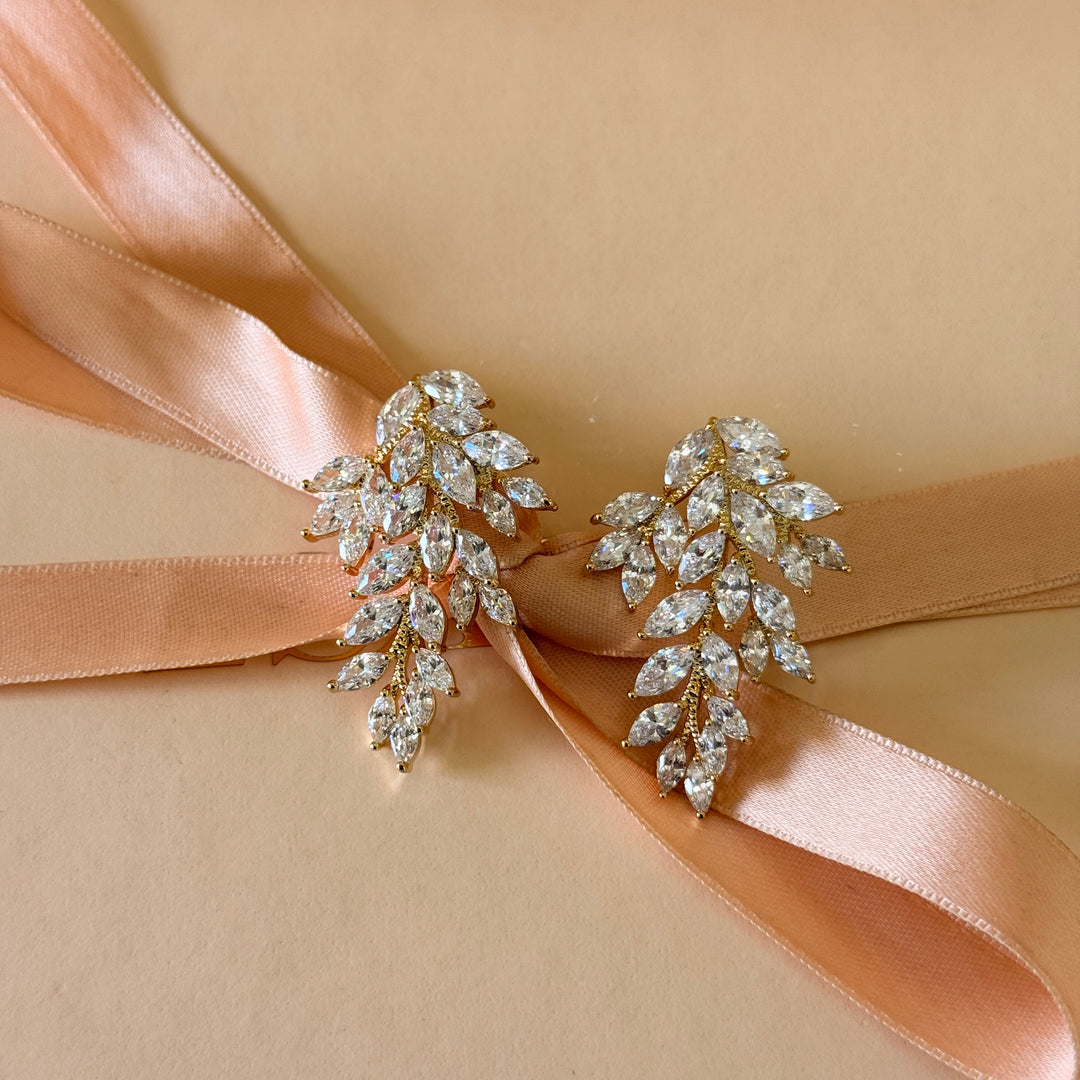 Marquise shaped sterling silver gold plated earrings