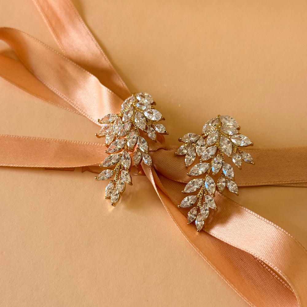 Flower and teardrop zircone gold plated earrings