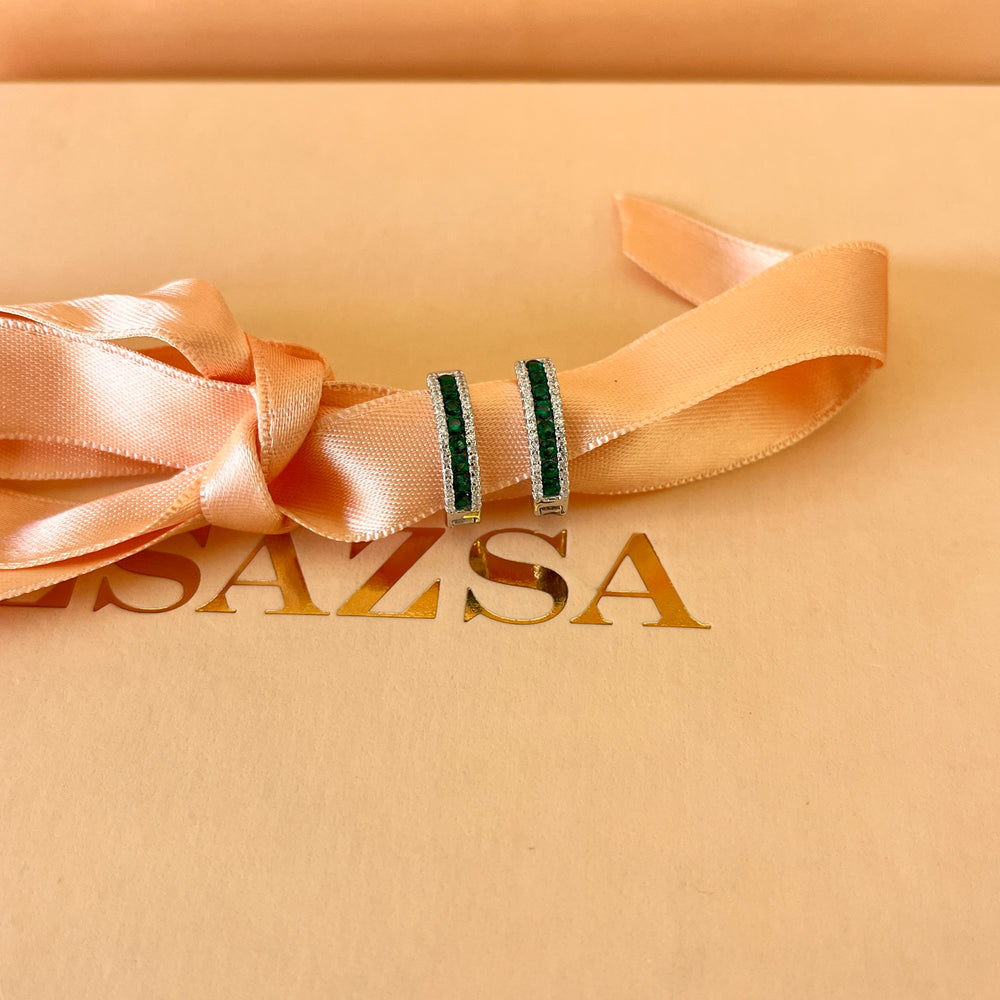 Add a touch of elegance and glamour to any outfit with our gradient of green zircone set. Crafted with sterling silver 925, this hoops, necklace and bracelet set features a stunning tennis design with a gradient of green zircones. Make a statement and stand out from the crowd with this must-have accessory.