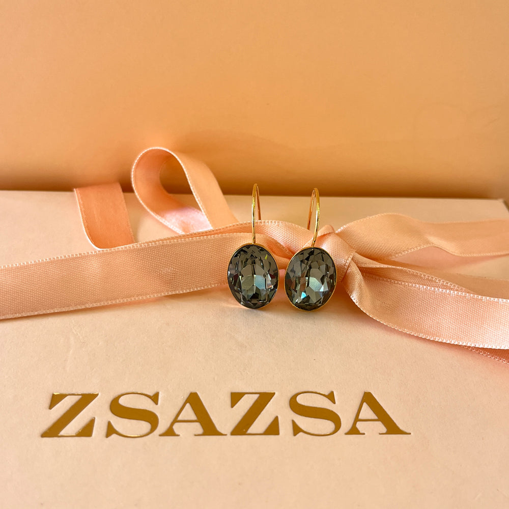 Grey oval Swarovski crystals hooks