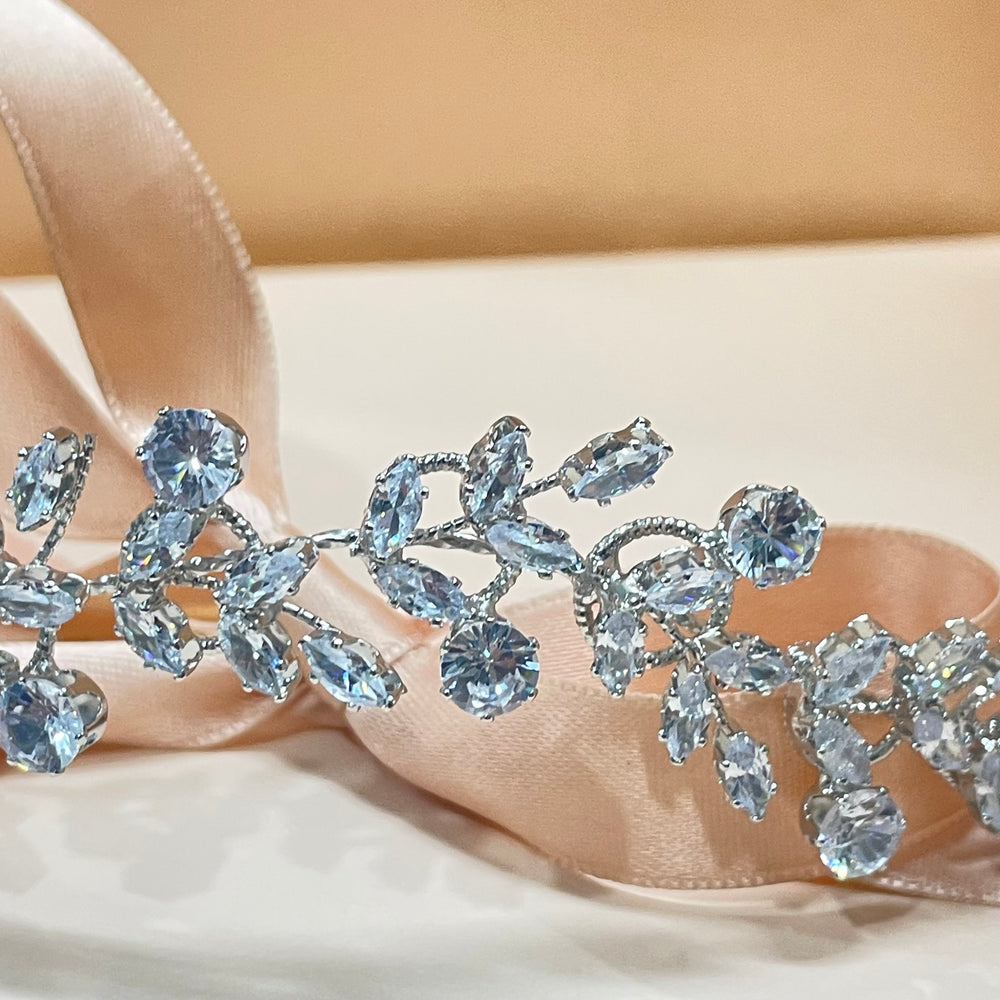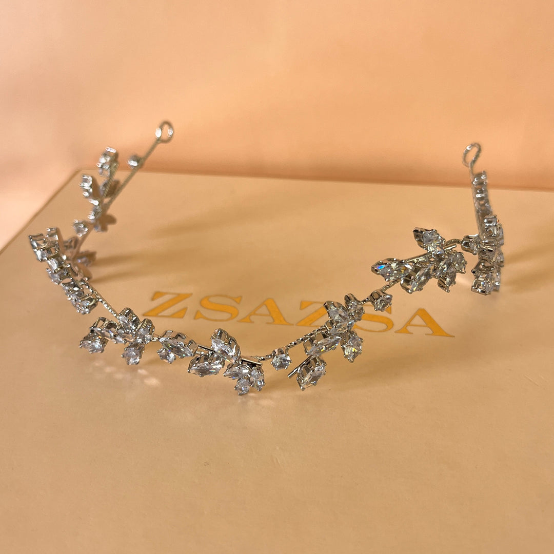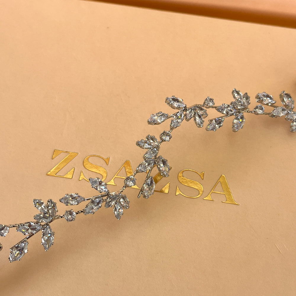 Silver leaf cubic zircone flexible headpiece