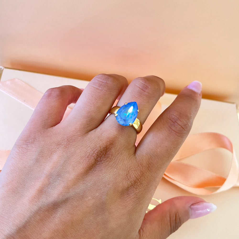 Light blue teardrop Swarovski crystal ring