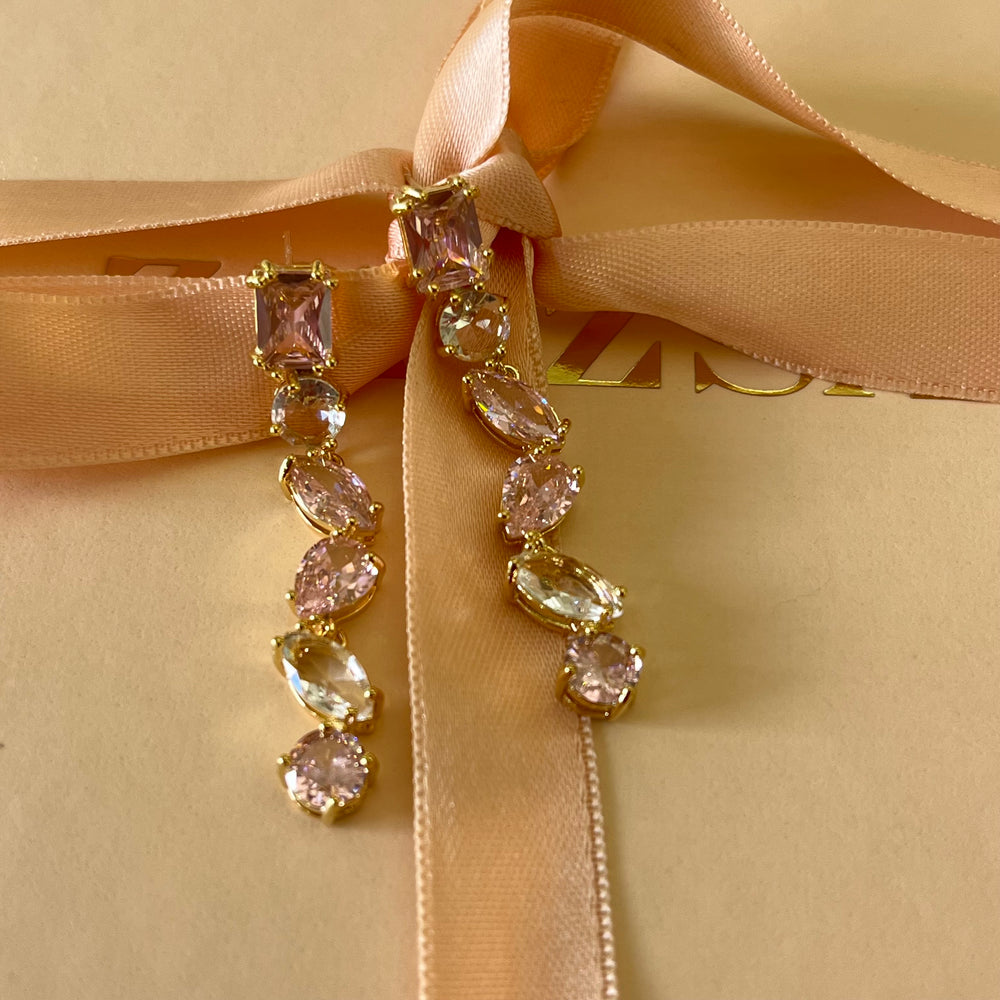 Light pink Swarovski crystals gold plated earrings