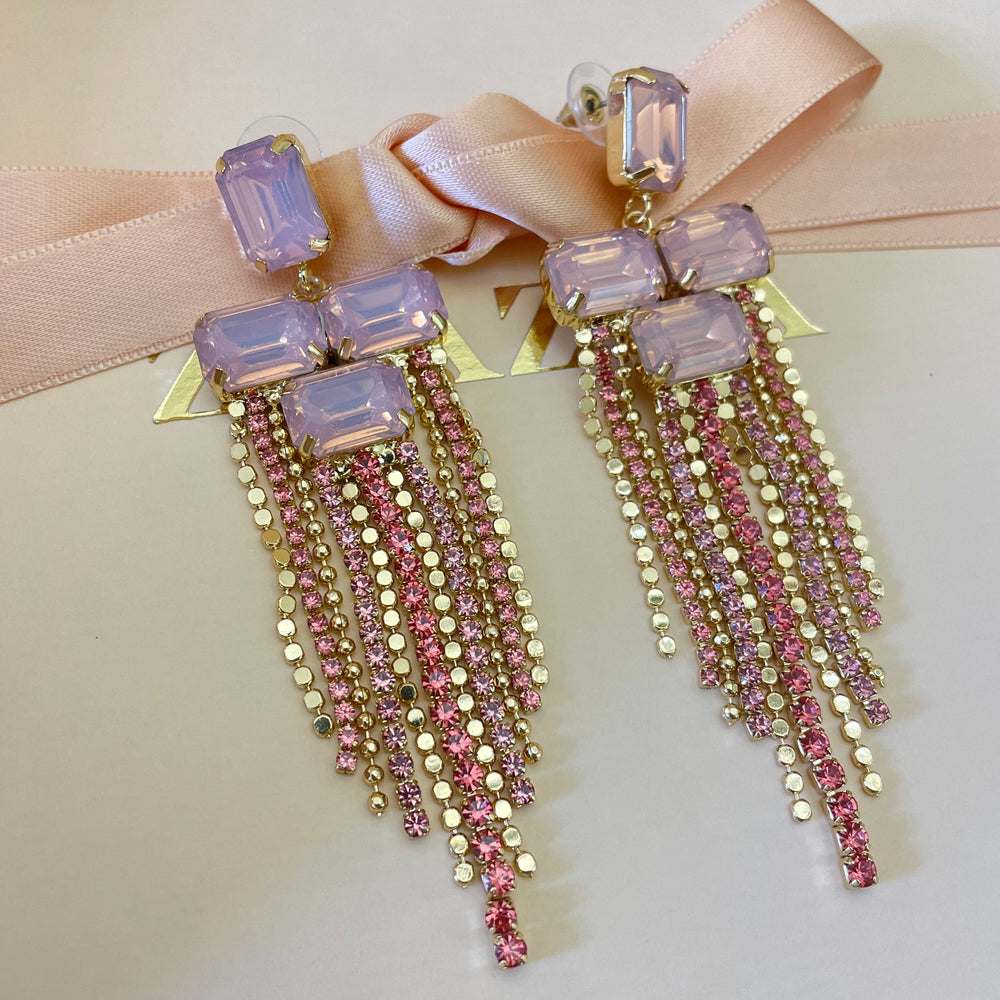 Pink Swarovski crystals gold plated earrings