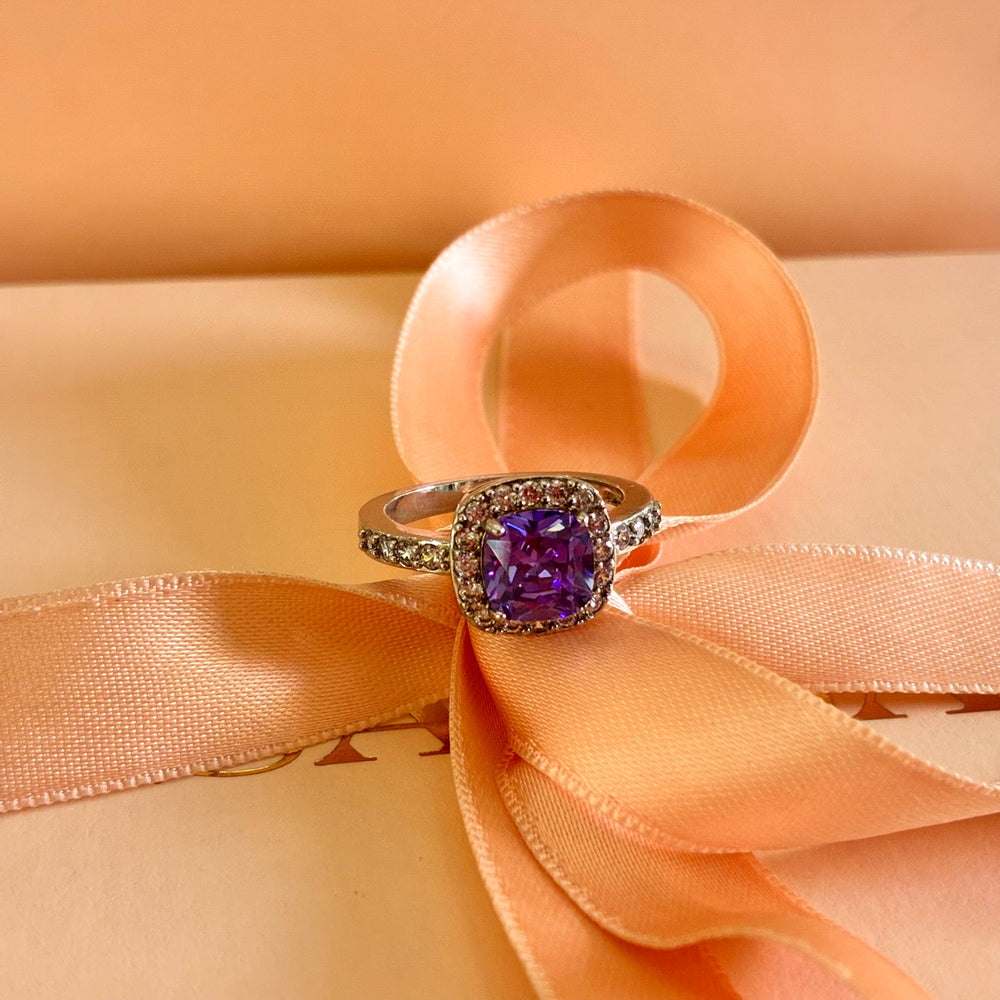 Square lilac zircone silver ring