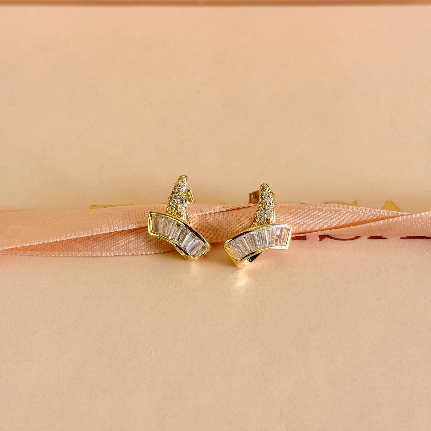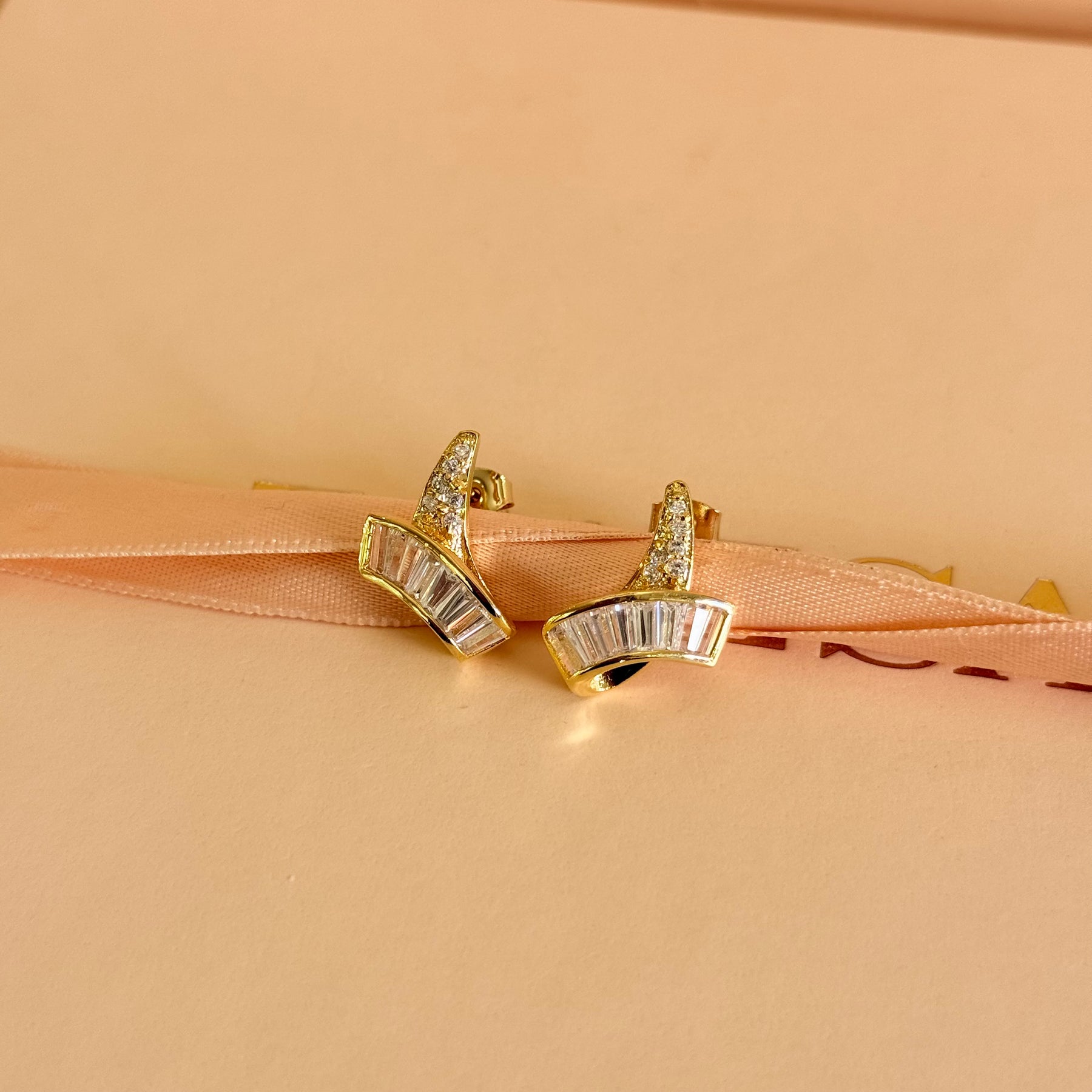 Expertly crafted, these Baguette zircone gold plated earrings add a touch of luxury to any occasion. Featuring a stunning baguette cut zircone stone, these stud earrings are beautifully complemented by a gold plated finish. Elevate your style with these elegant and timeless pieces.