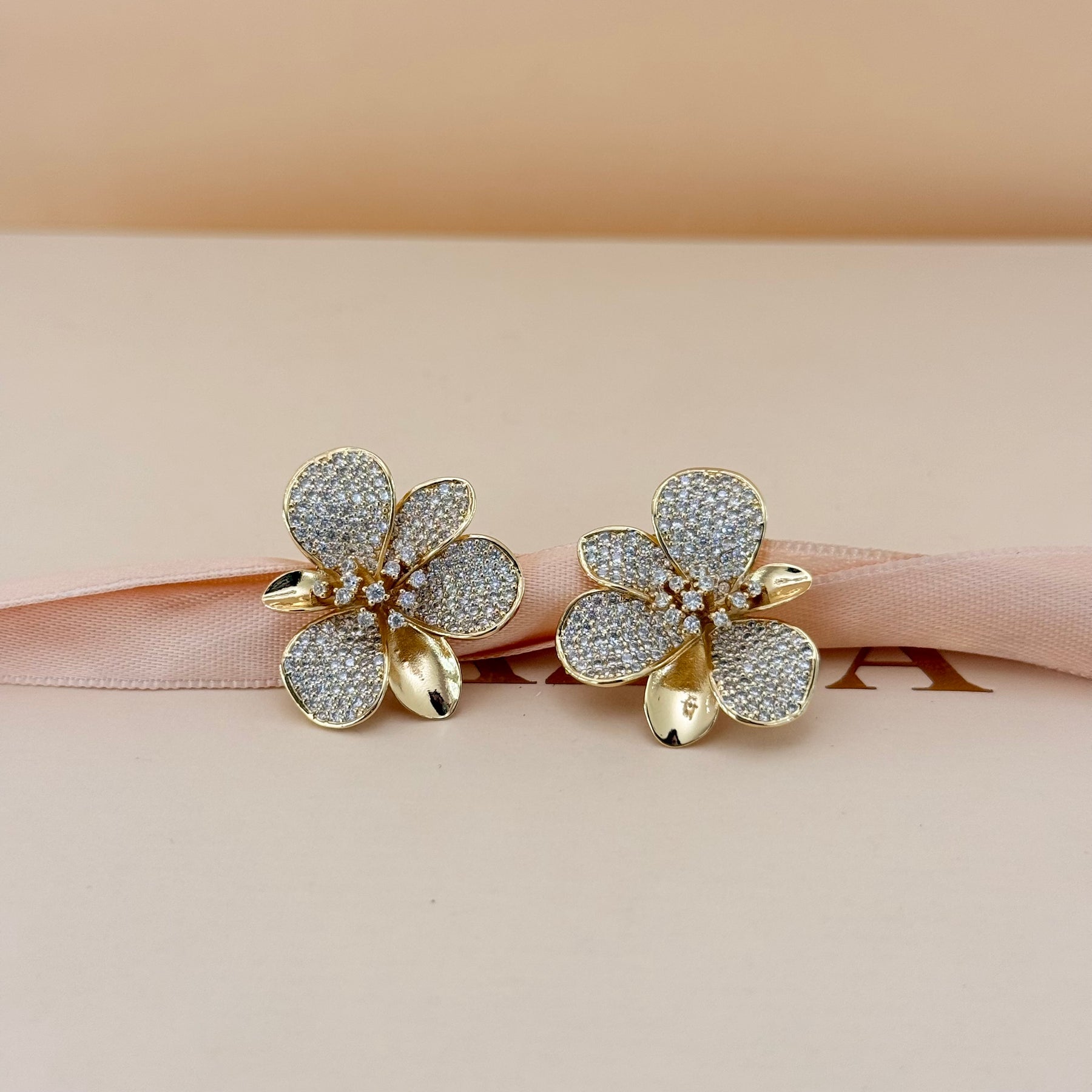 These gold plated flower zircone earrings are perfect for any special occasion. The beautiful design features big studs and simple petal shapes, making them a great choice for both the mother of the bride and groom.