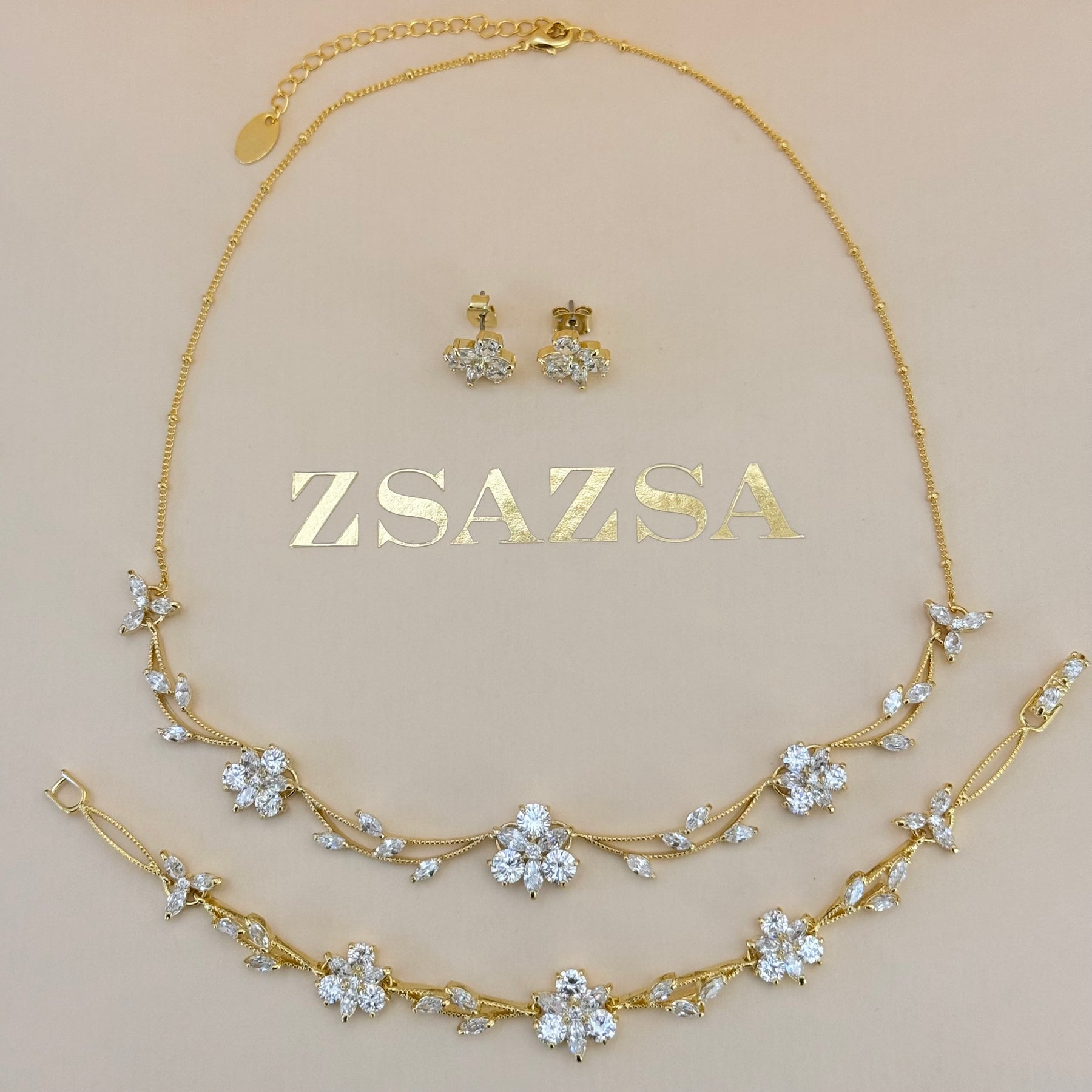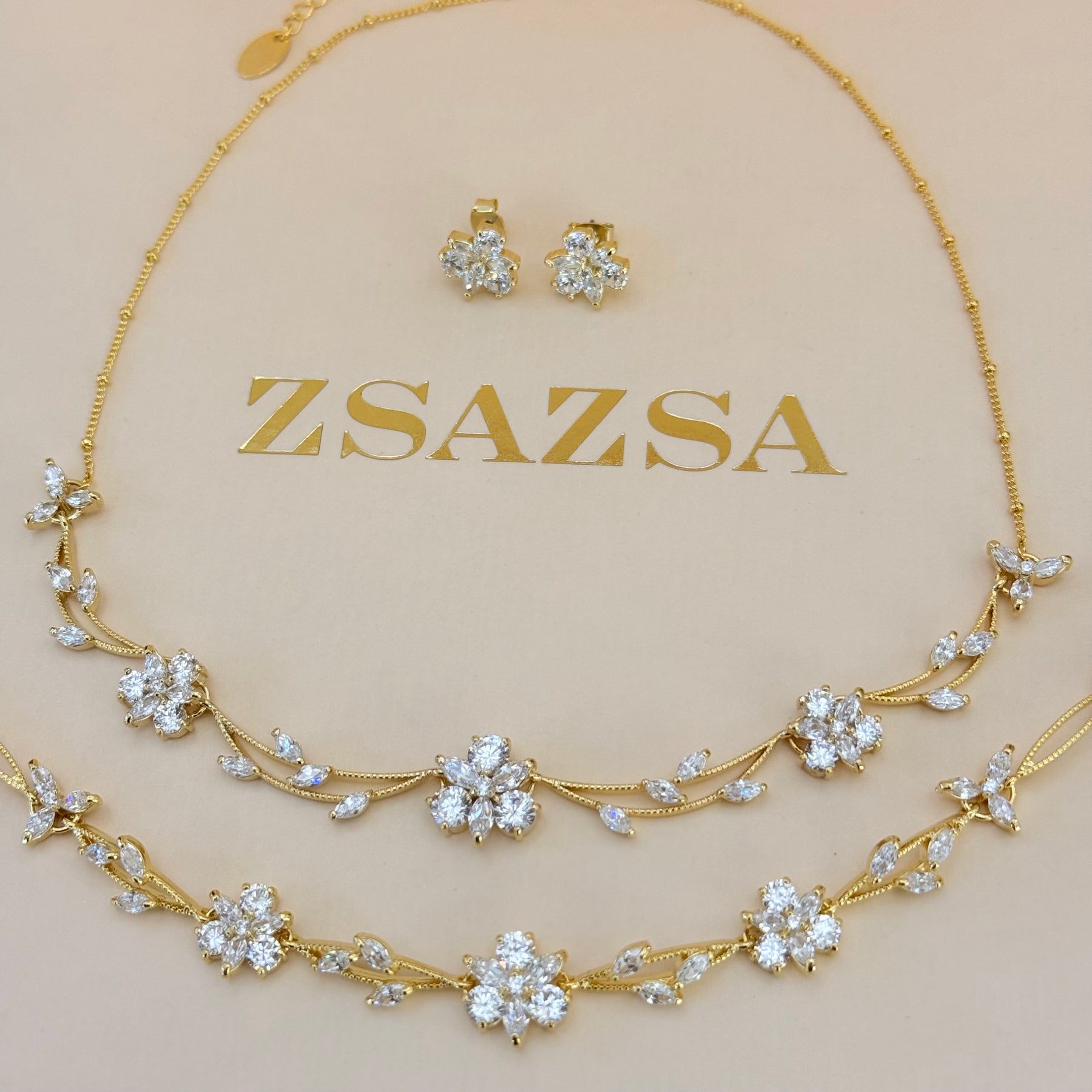 Elevate your special day with the Flower Zircone Gold Plated Set. Its elegant flower design adorned with shimmering zircones adds a touch of sophistication, making it perfect for brides or mothers of the bride and groom. Celebrate love with a timeless accessory that complements any wedding attire beautifully.