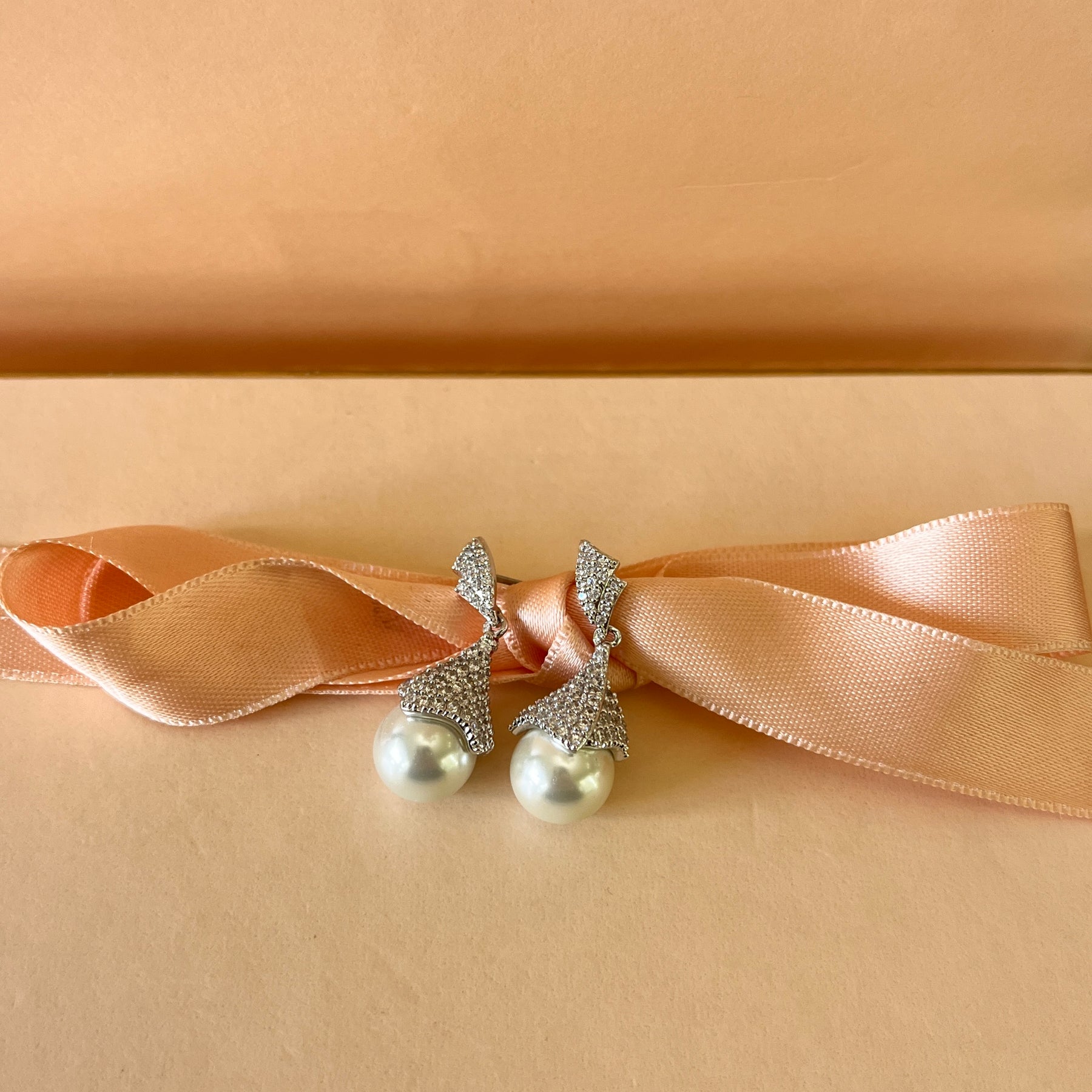 zircone and white pearls white gold plated bell earrings