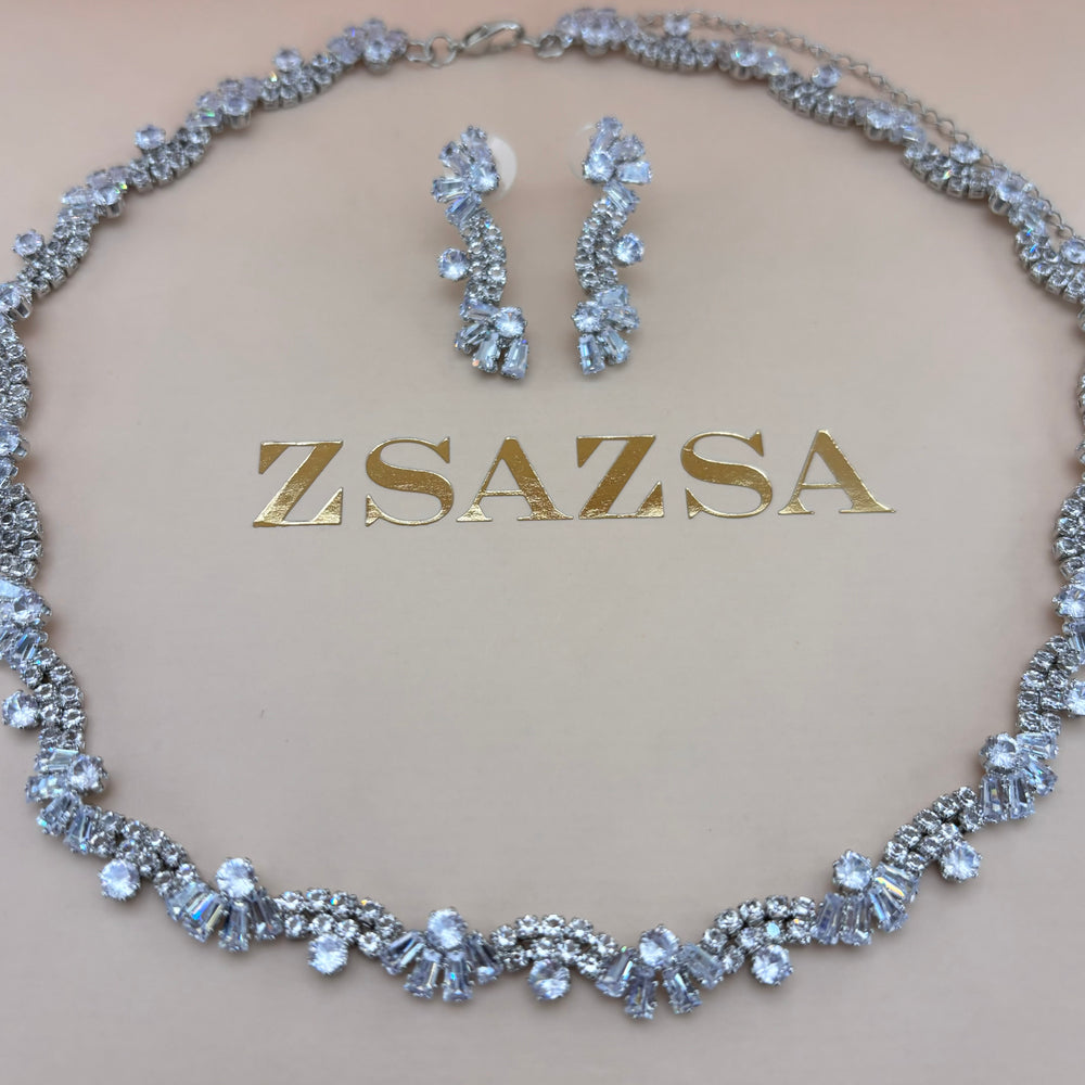 Silver zircone fringe set
