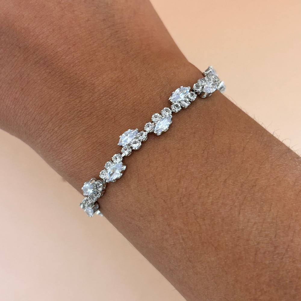 Baguette zircone in a tennis style white gold plated set