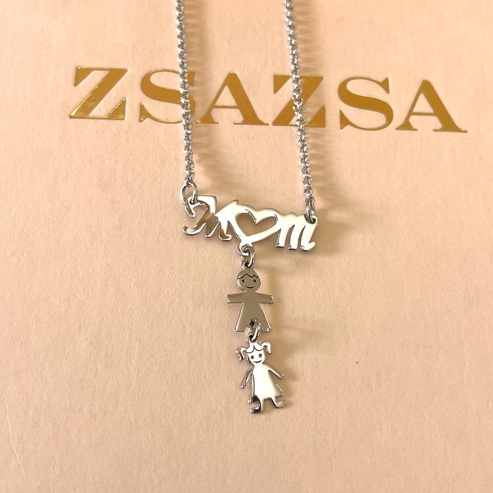 Mom & children white gold plated necklace