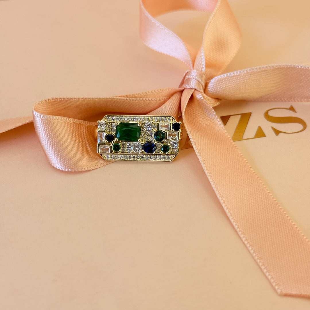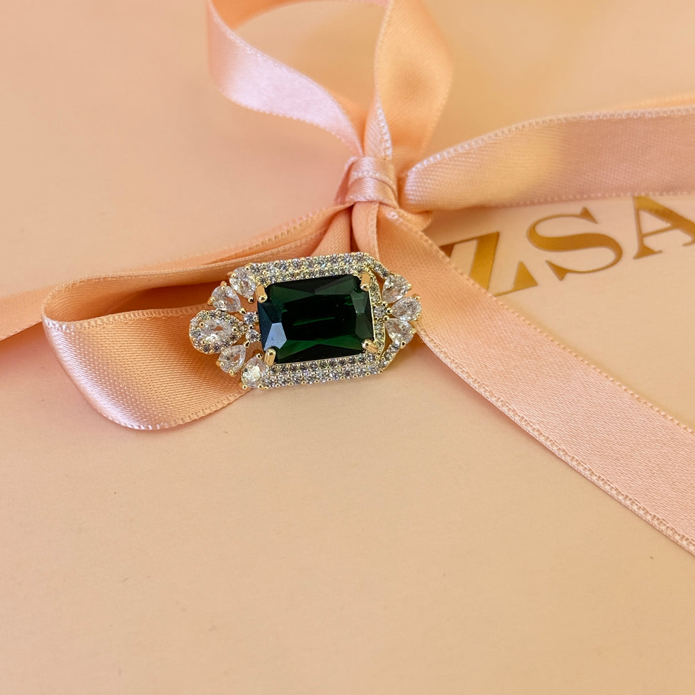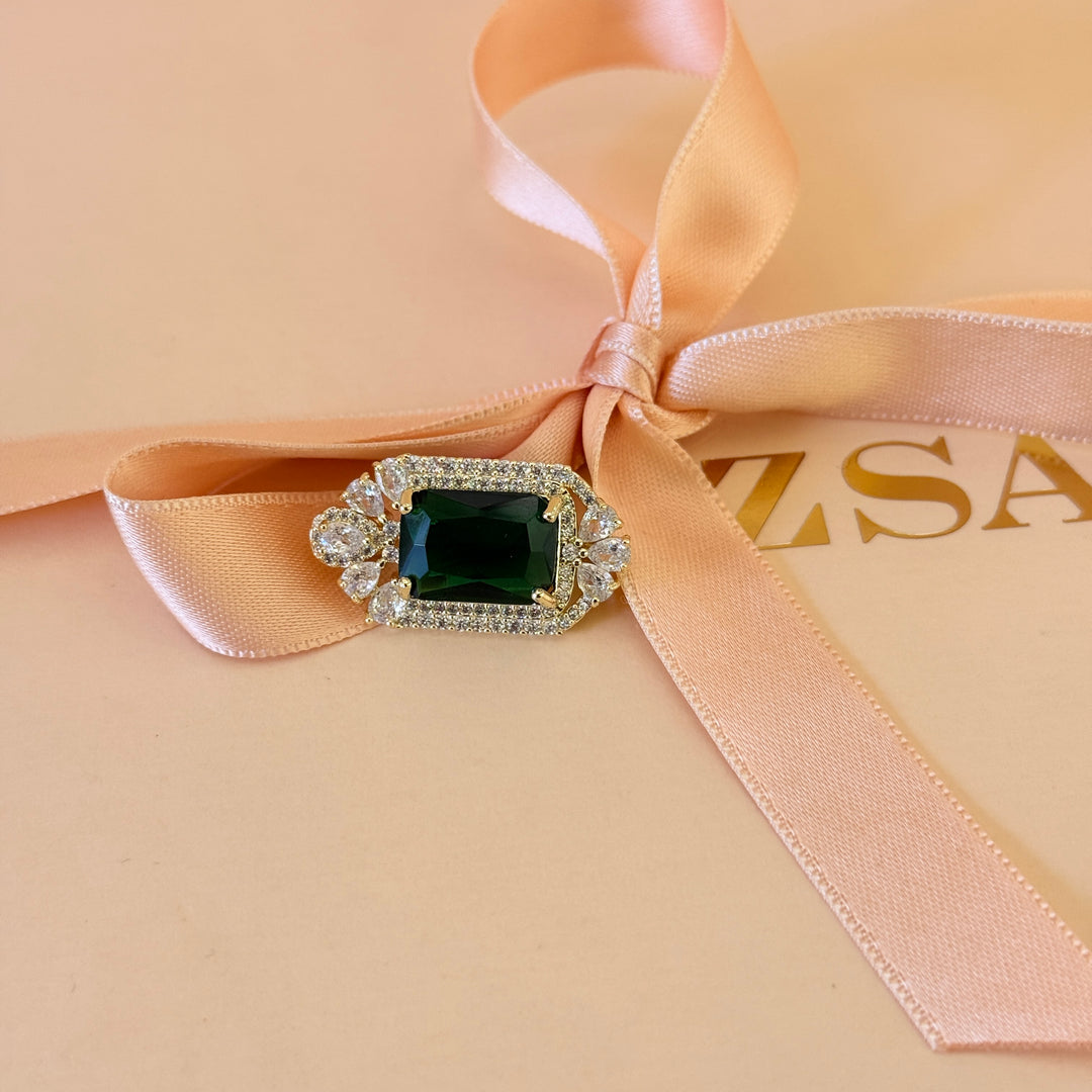 Dainty Rectangular green zircone brooch