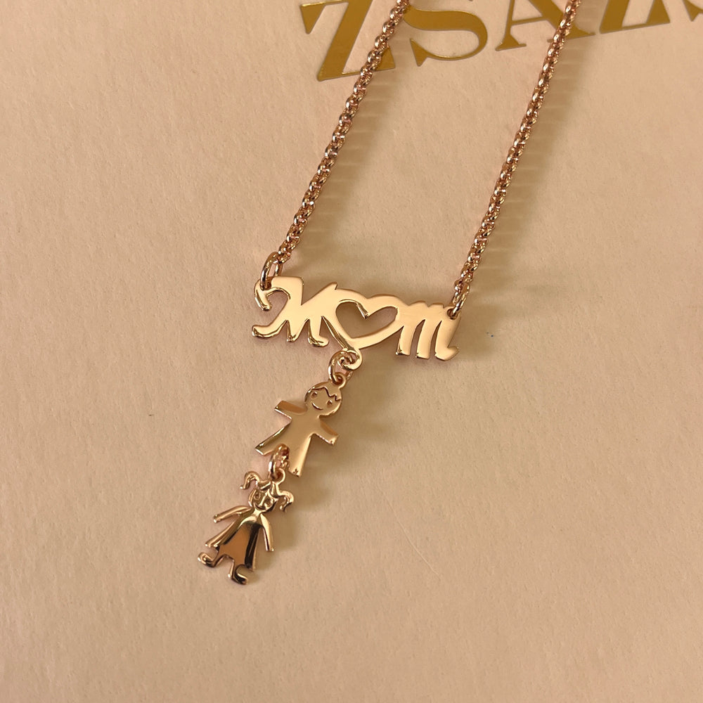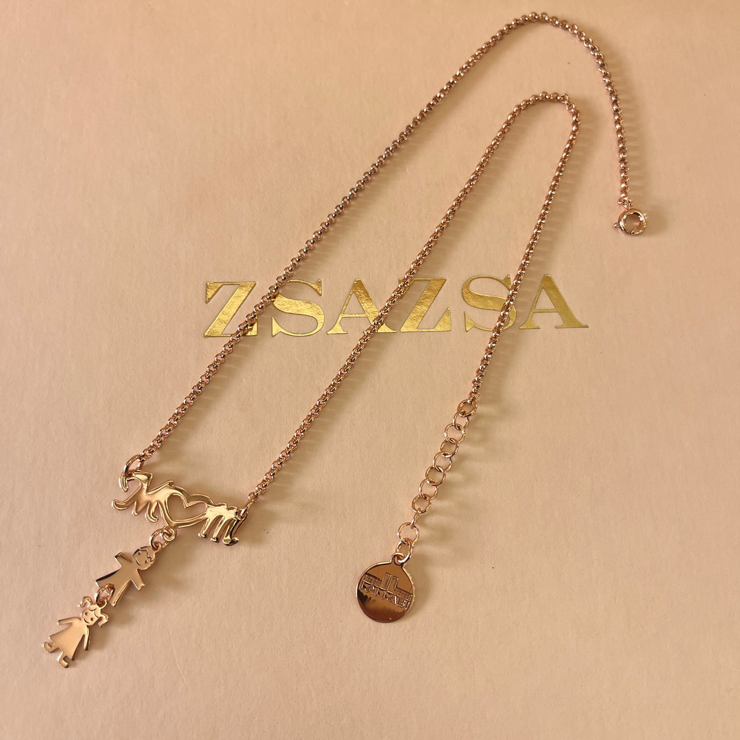 Mom & children rose gold plated necklace
