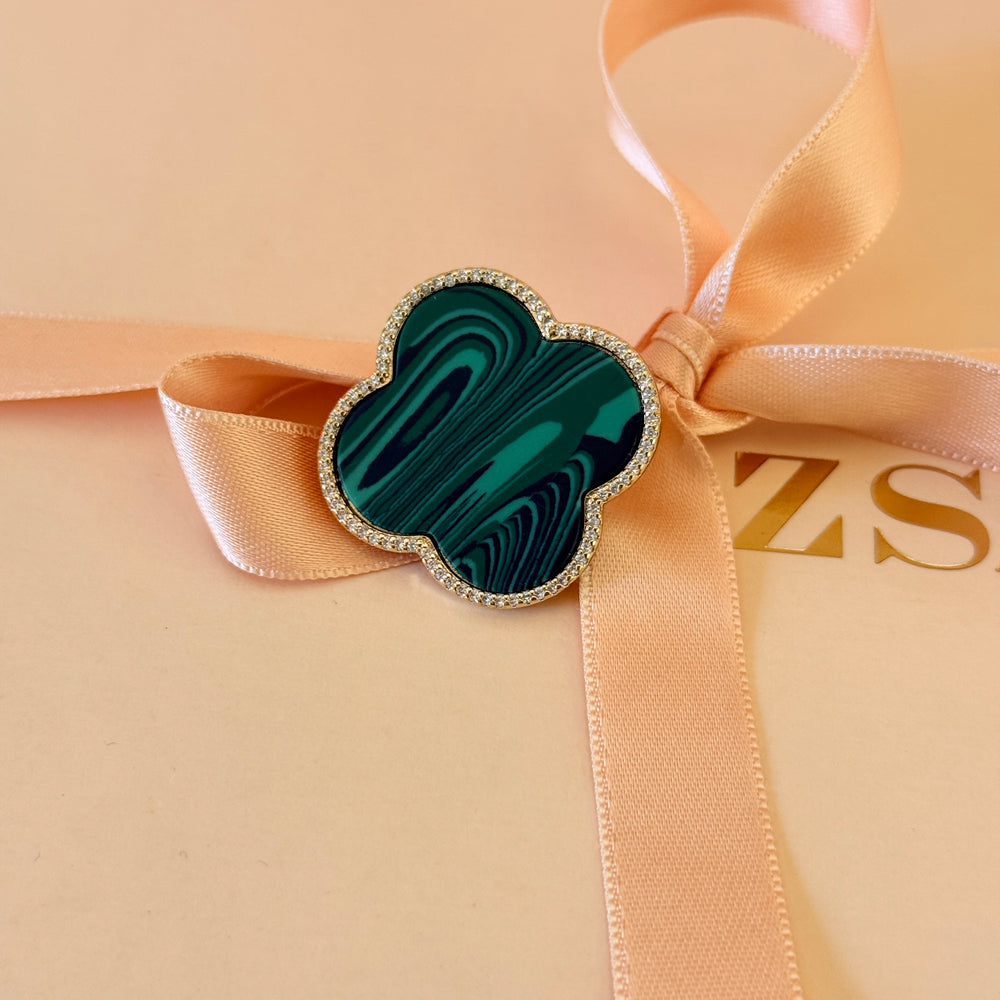 Van cleef Green and zircone gold plated brooch
