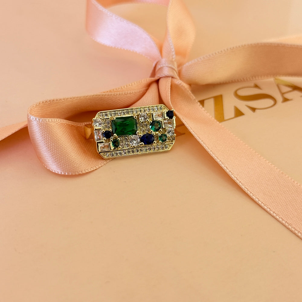Dainty green and blue zircone gold plated brooch