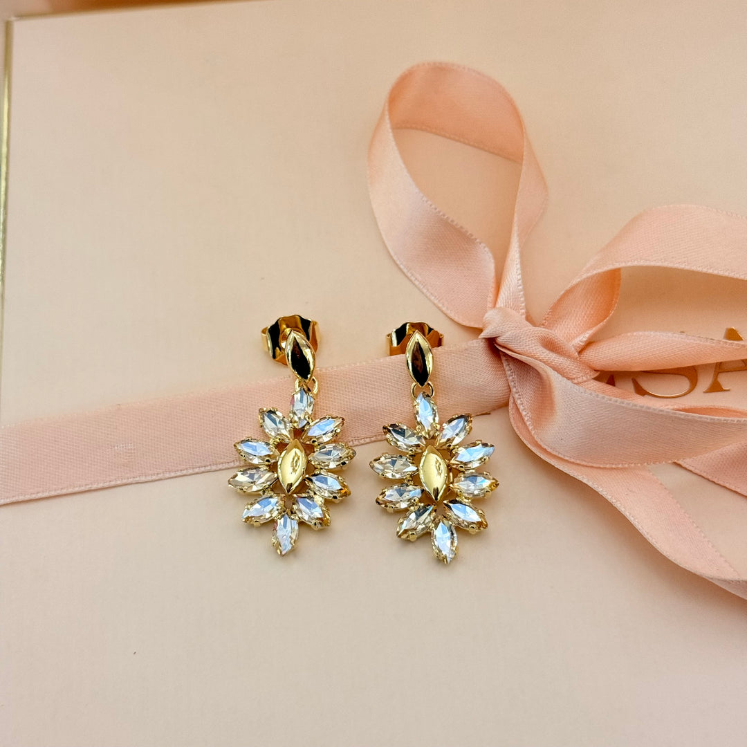 Marquise champagne Swarovski crystals gold plated earrings
