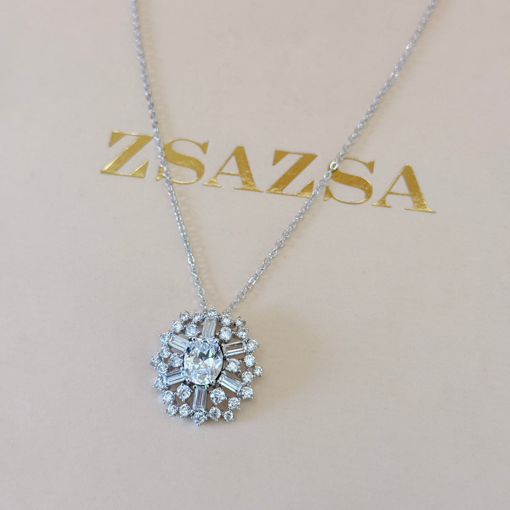 Dainty oval zircone silver pendant
