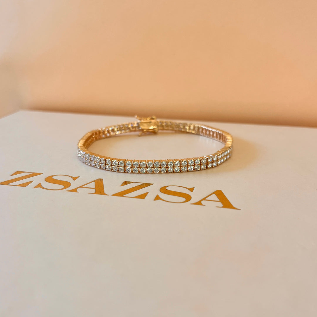 Zircone light rose gold plated sterling silver 2 rows tennis bracelet