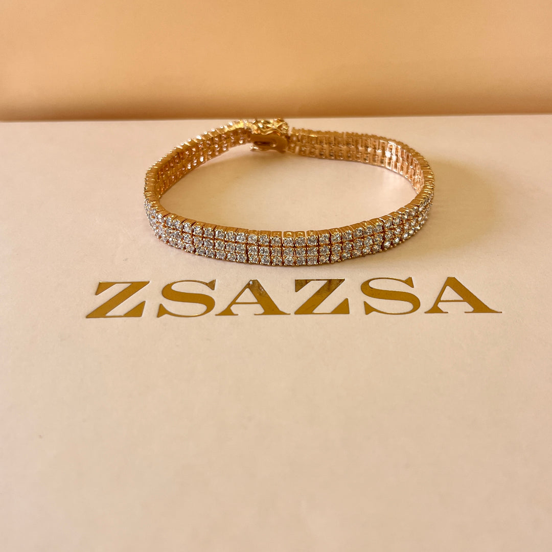 Zircone light rose gold plated 3 rows tennis bracelet