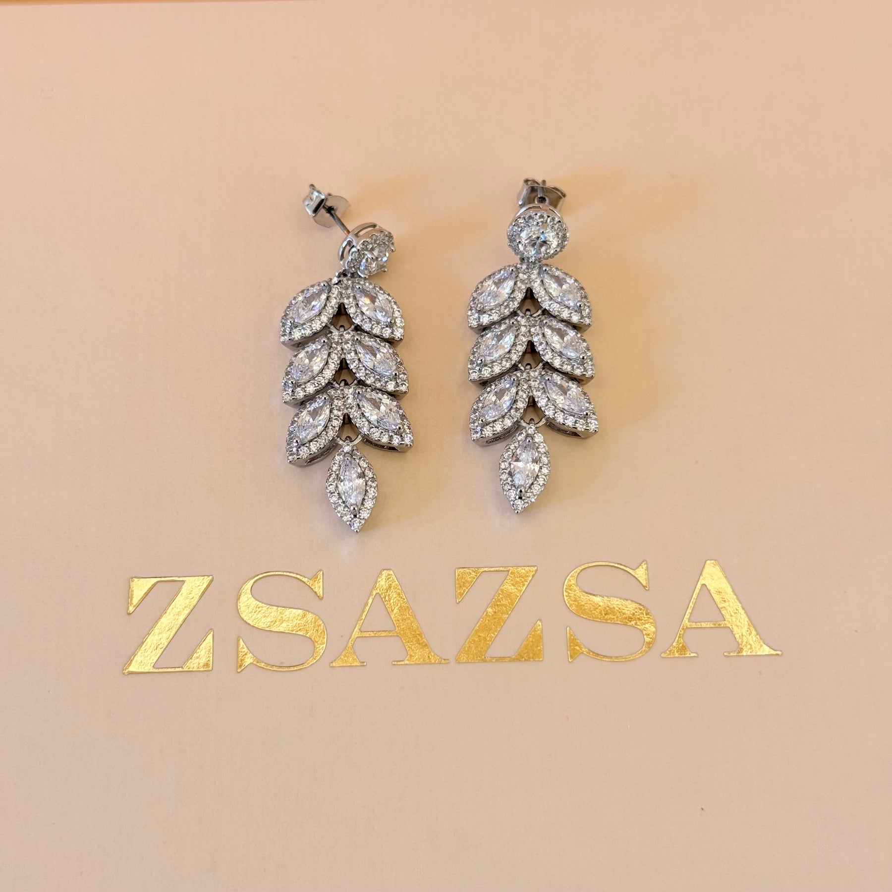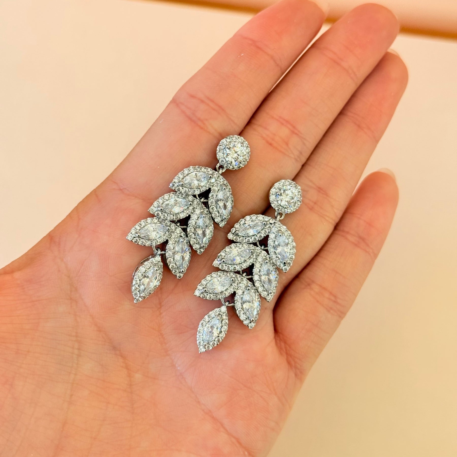 Elevate your look with our Marquise zircone silver earrings. These stunning earrings feature a marquise-shaped zircone and elegant white gold plating. Perfect for brides, mothers of the bride and groom, and weddings. Add a touch of glamour to any outfit.