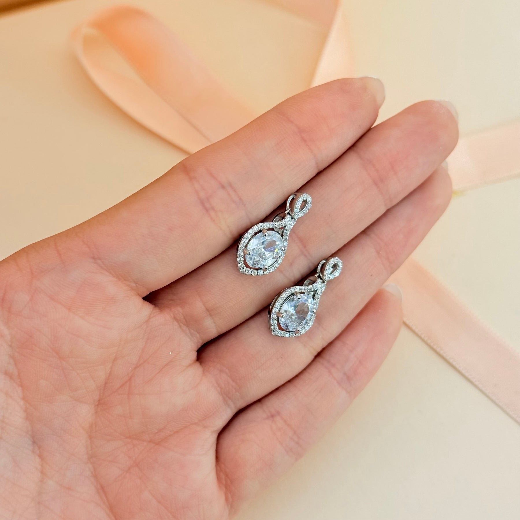 Elevate any special occasion with these oval dangle zircone sterling silver earrings! Made with high-quality materials, the dangling oval design adds a touch of elegance while the sparkling zircone stones provide a luxurious look. Perfect for adding a touch of glamour to any outfit.