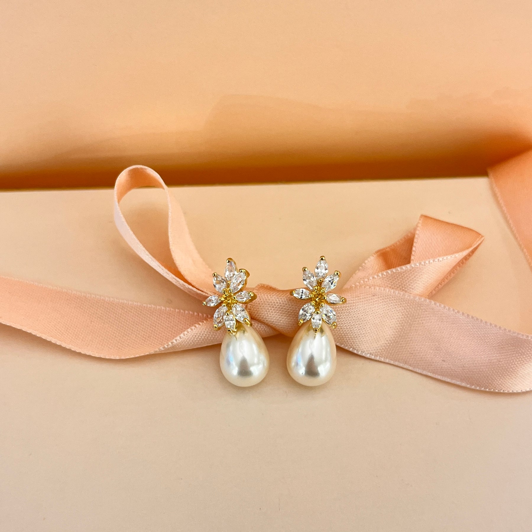 Marquise zircone and cream pearl gold plated earrings