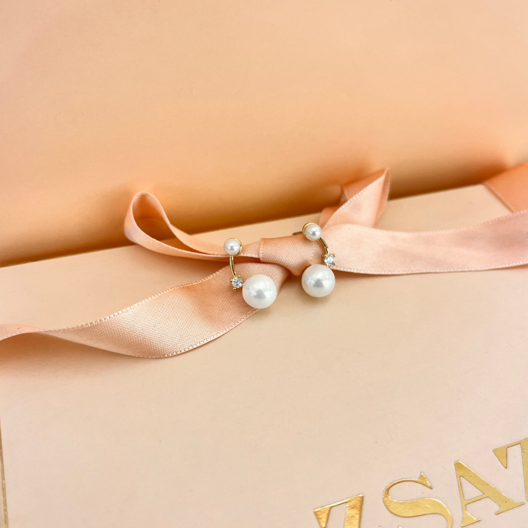 These refined gold-plated stud earrings feature round white simulated pearls paired with brilliant round zirconia in a minimalist silhouette. The dainty proportions deliver understated sophistication while maintaining comfortable wearability throughout the day. Zirconia stones offer exceptional optical clarity and sparkle, while pearl simulants provide a soft, iridescent finish that balances the brilliance. The gold plating ensures durability and a warm aesthetic, while the lightweight design reduces ear fatigue. Ideal for those seeking timeless elegance with practical versatility across professional, casual, and formal settings.
