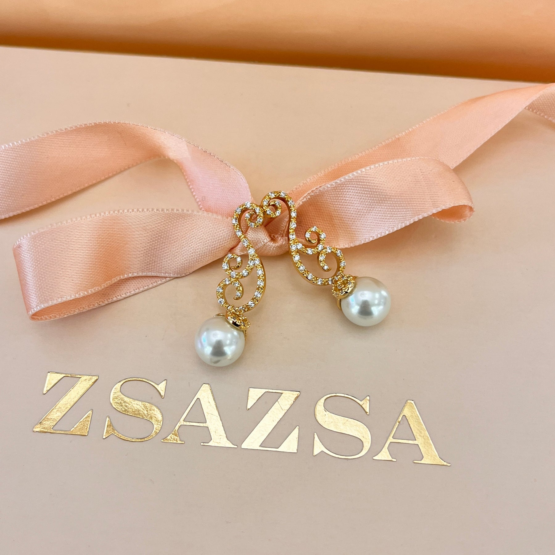 Zircone and white pearls gold plated earrings