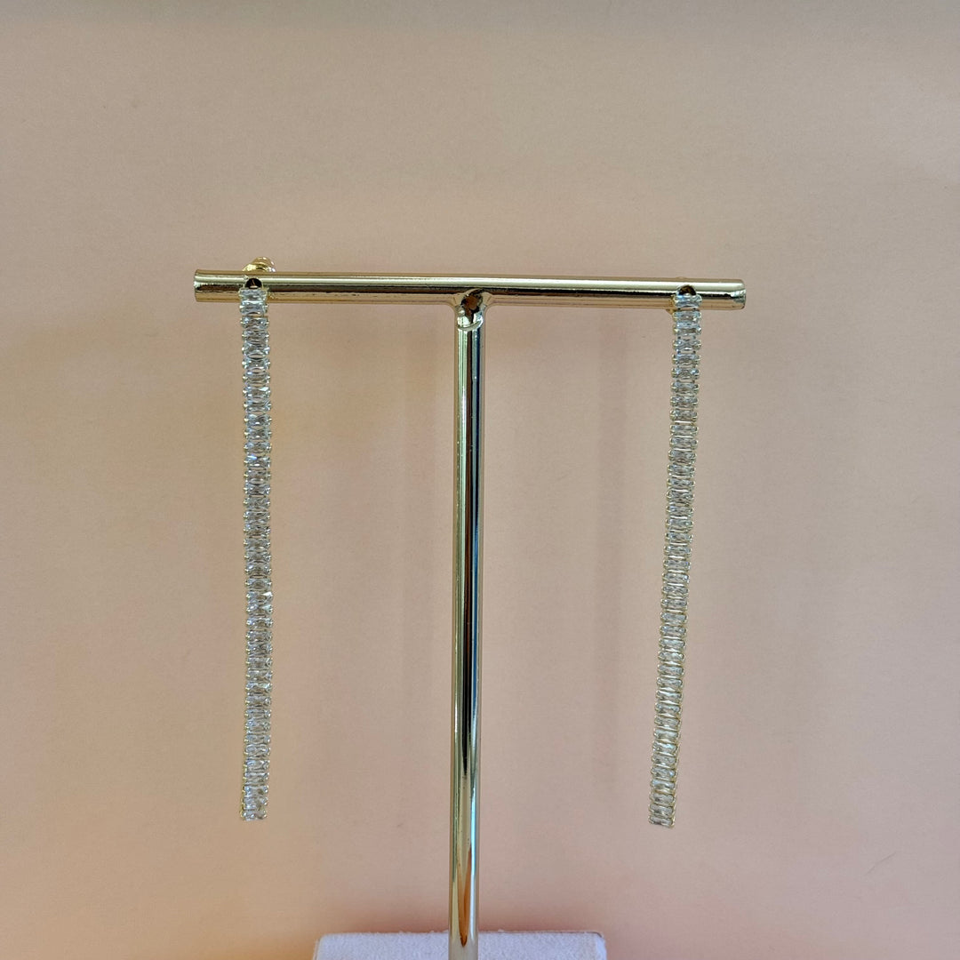 Long baguette zircone gold plated earrings