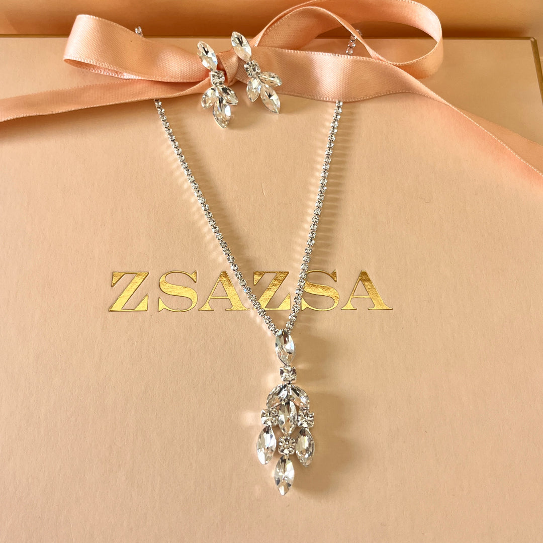 Marquise rhinestone white gold plated set