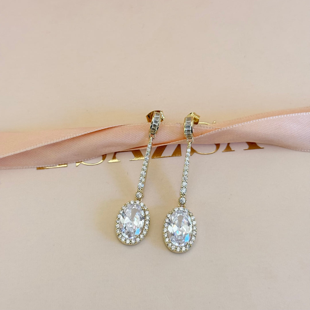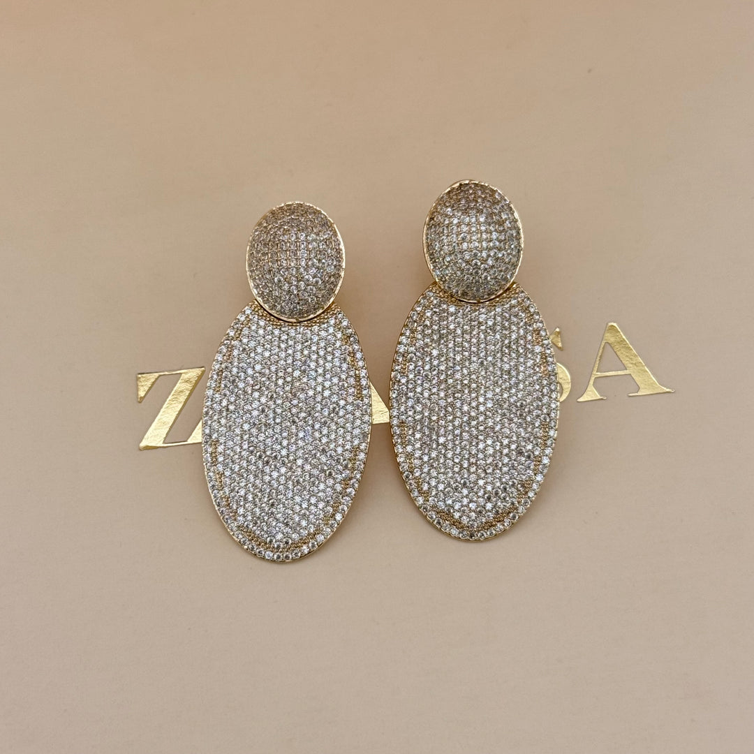 Dangle oval zircone gold plated earrings