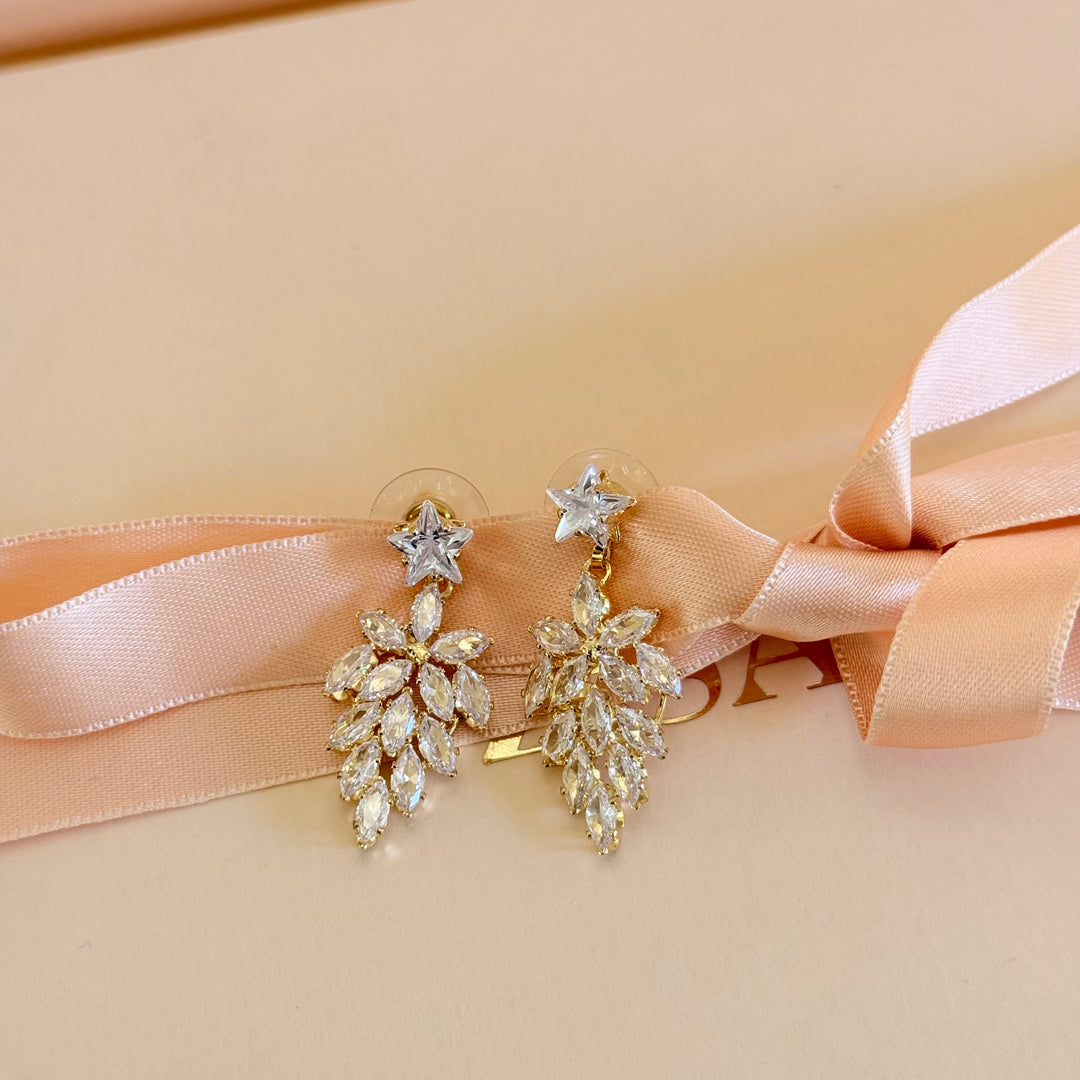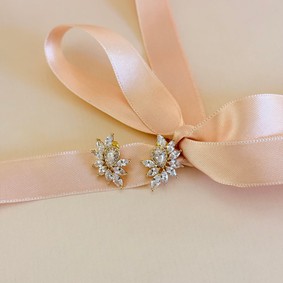 Marquise flower zircone gold plated earrings