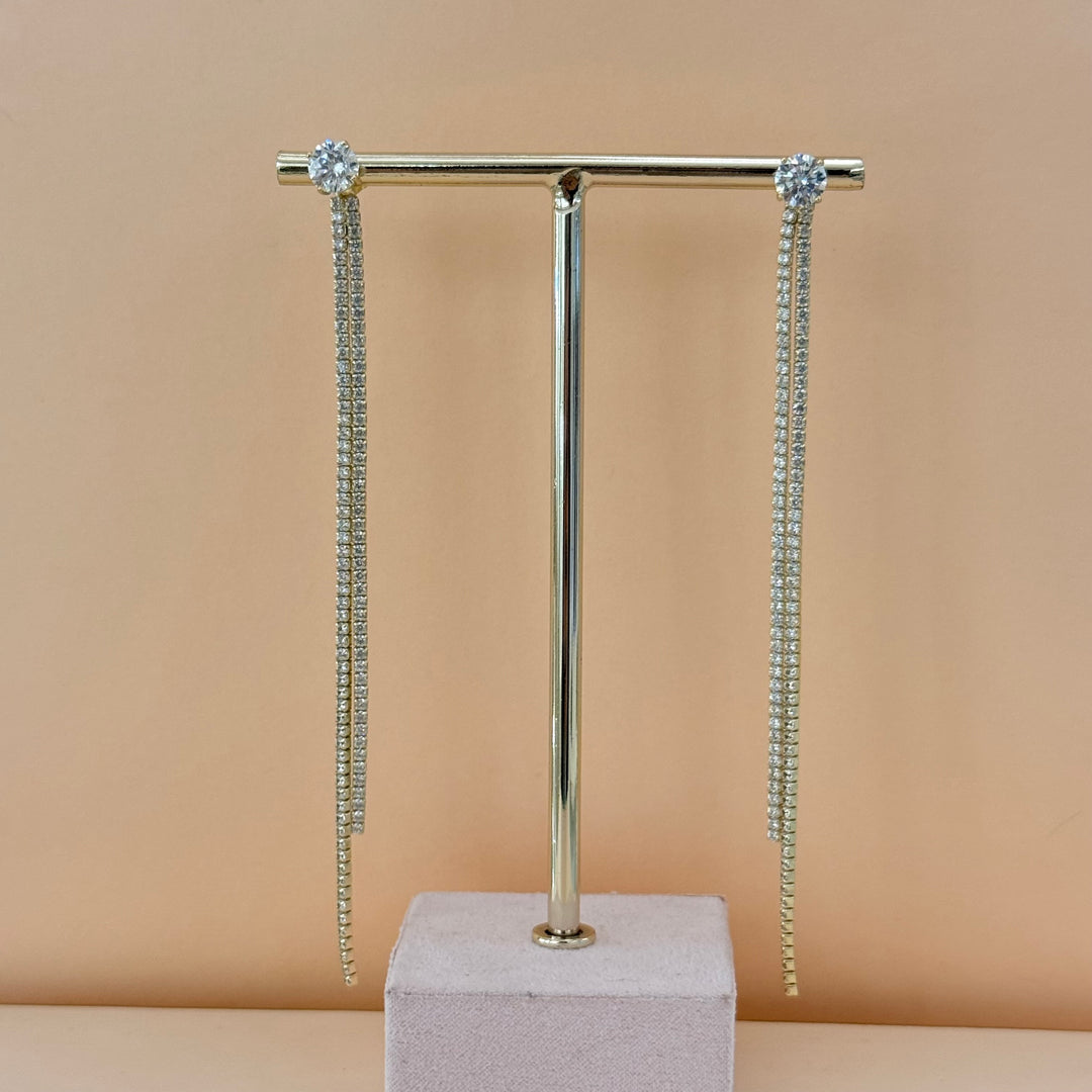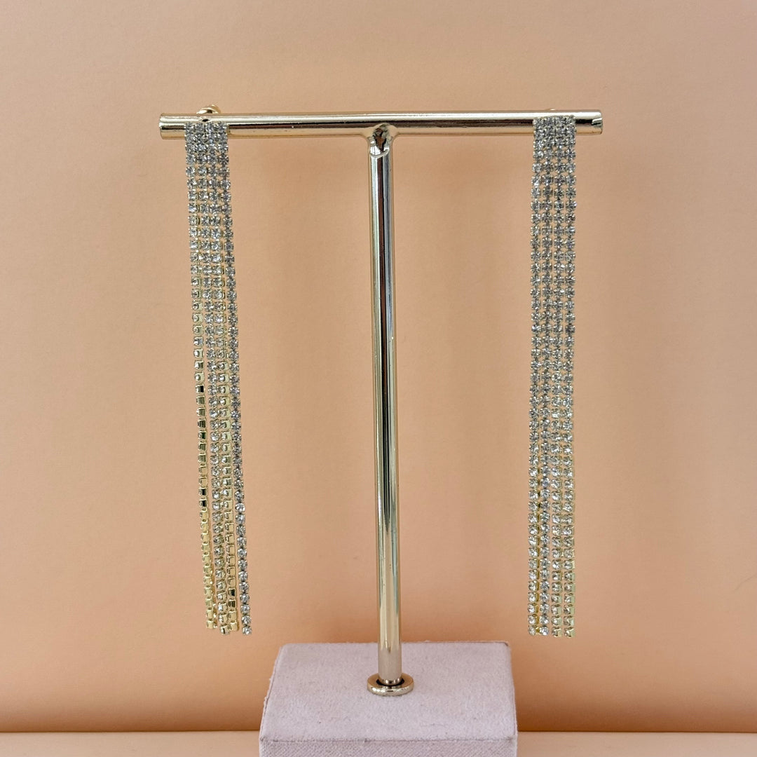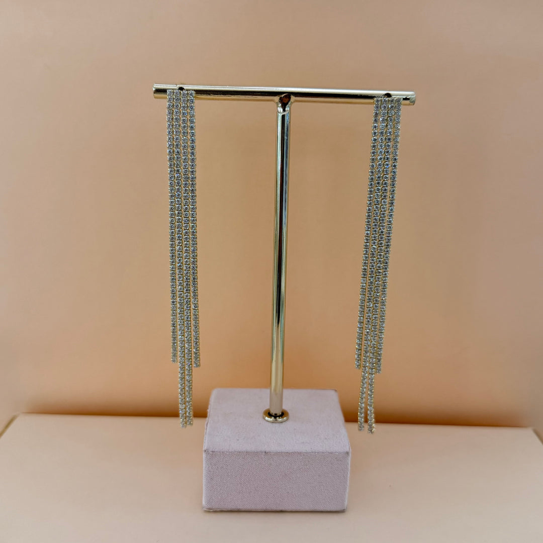 Long fringe gold plated zircone earrings