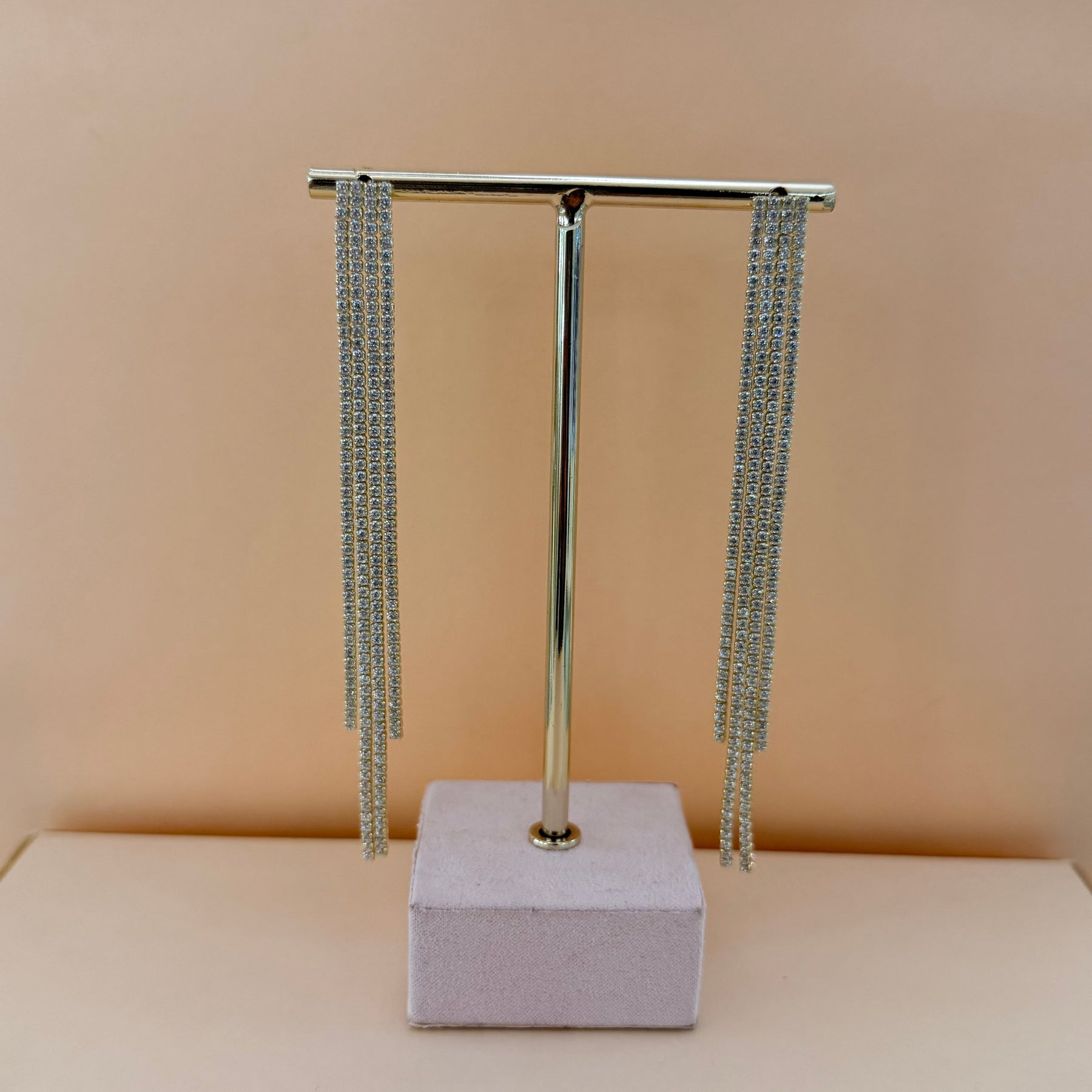 Elevate your accessory game with our stunning long fringe earrings. Made with high-quality sterling silver and gold plating, these elegant earrings feature delicate fringe and sparkling zircone, adding a touch of glamour to any outfit. Upgrade your style and make a statement with these timeless beauties.