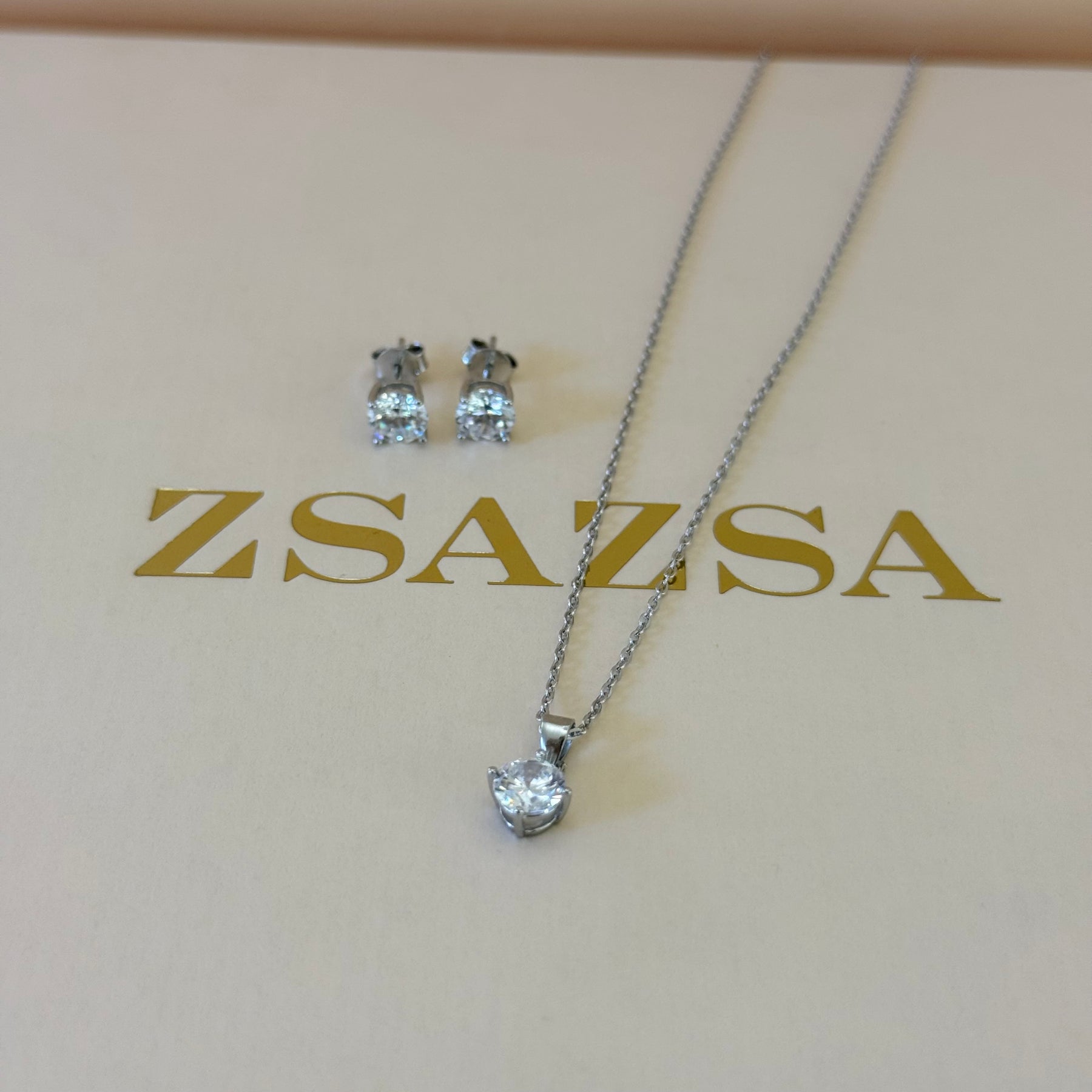 Elevate your style with the Solitaire Zircone Sterling Silver Set. Its simple yet elegant design makes it a perfect accessory for any occasion. Crafted from durable sterling silver, this set complements your look effortlessly and adds a touch of sparkle to your day. You'll feel confident and beautiful wearing it!
