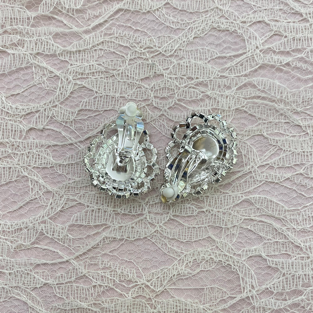 Pearl rhinestone clips earrings