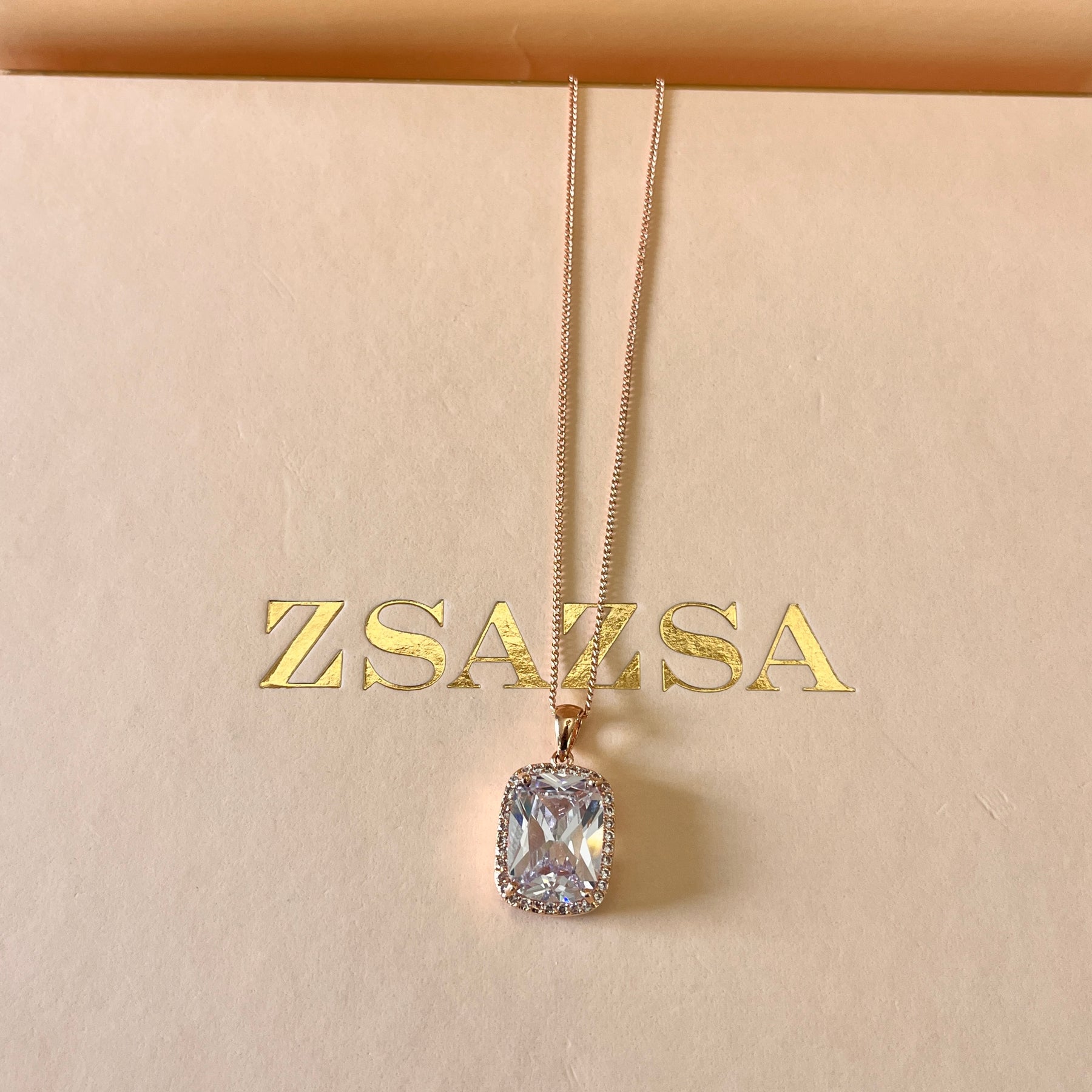 The Rectangular Rose Gold Plated pendant features elegantly shaped with rectangular zircone stones in the pendant necklace, providing a refined aesthetic. The rose gold plating offering a femenine finish, suitable for various occasions. This set combines timeless design with a modern touch.