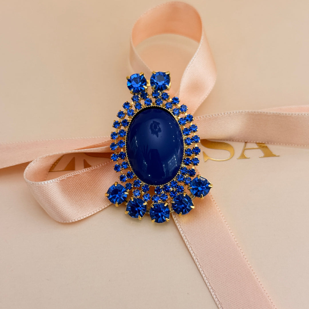 Royal blue preciosa crystals gold plated brooch